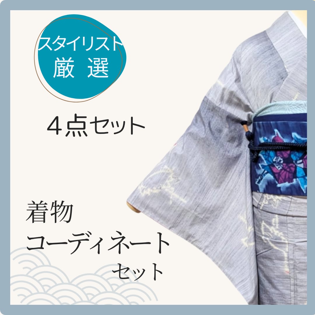 【新着入荷】 着物スタイリストが厳選したトータルコーデセット! 着物初心者さん応援セットです 届いてすぐ完璧コーデお出掛けも