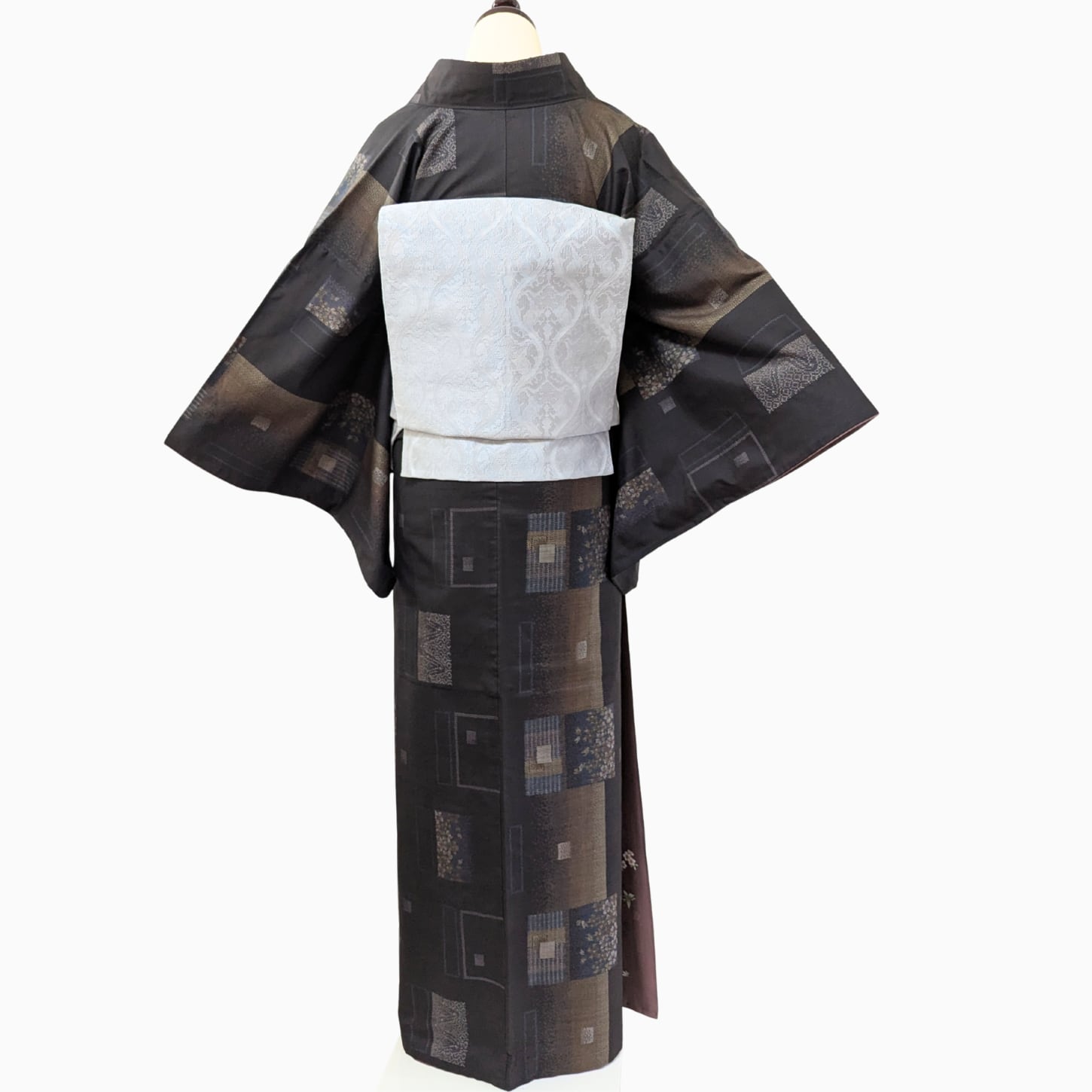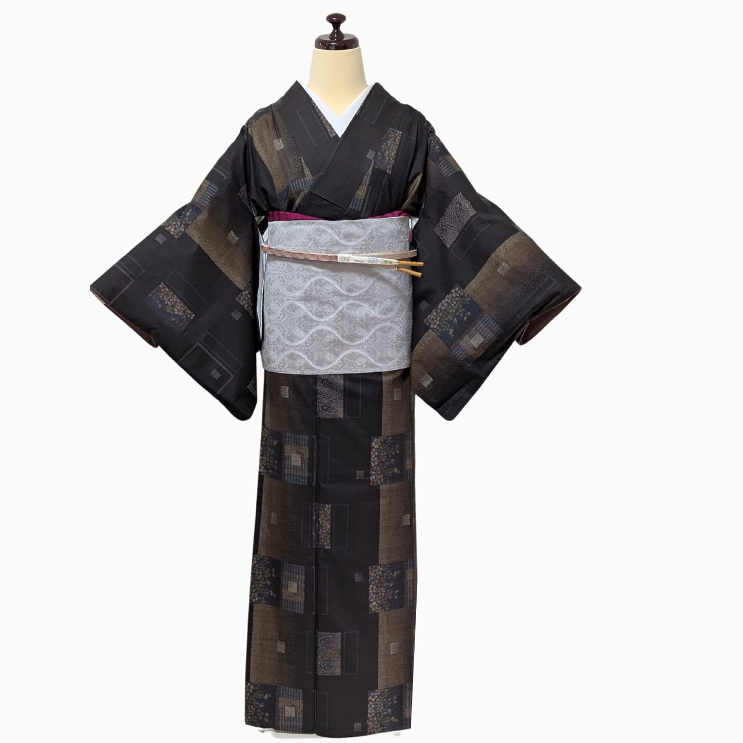 ダークトーンで引き締まった色合いは、帯締め・帯揚げのコーディネートも容易で、あなただけのスタイルを楽しむことができます。