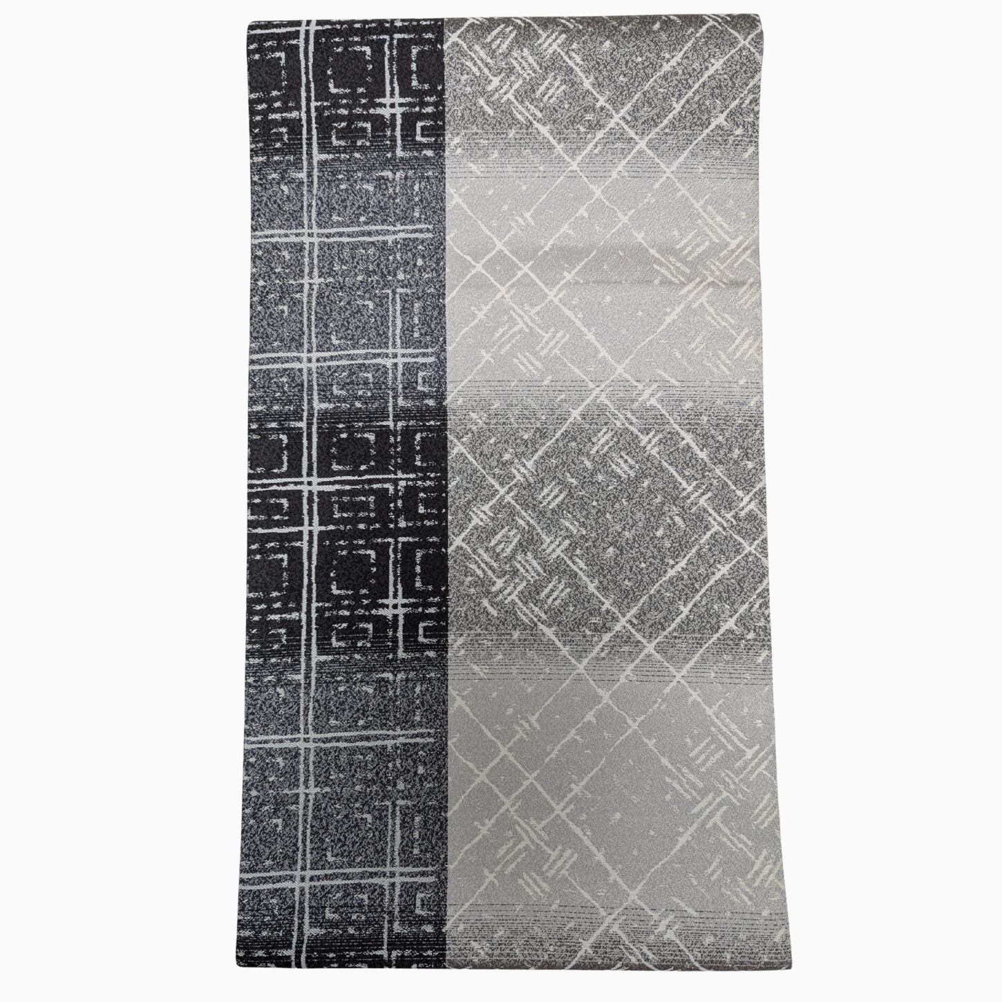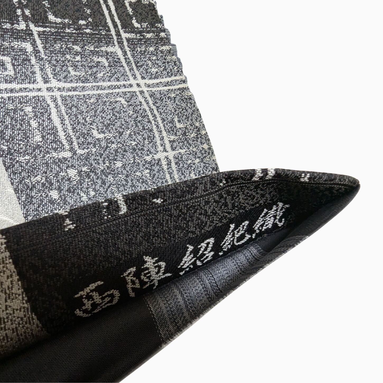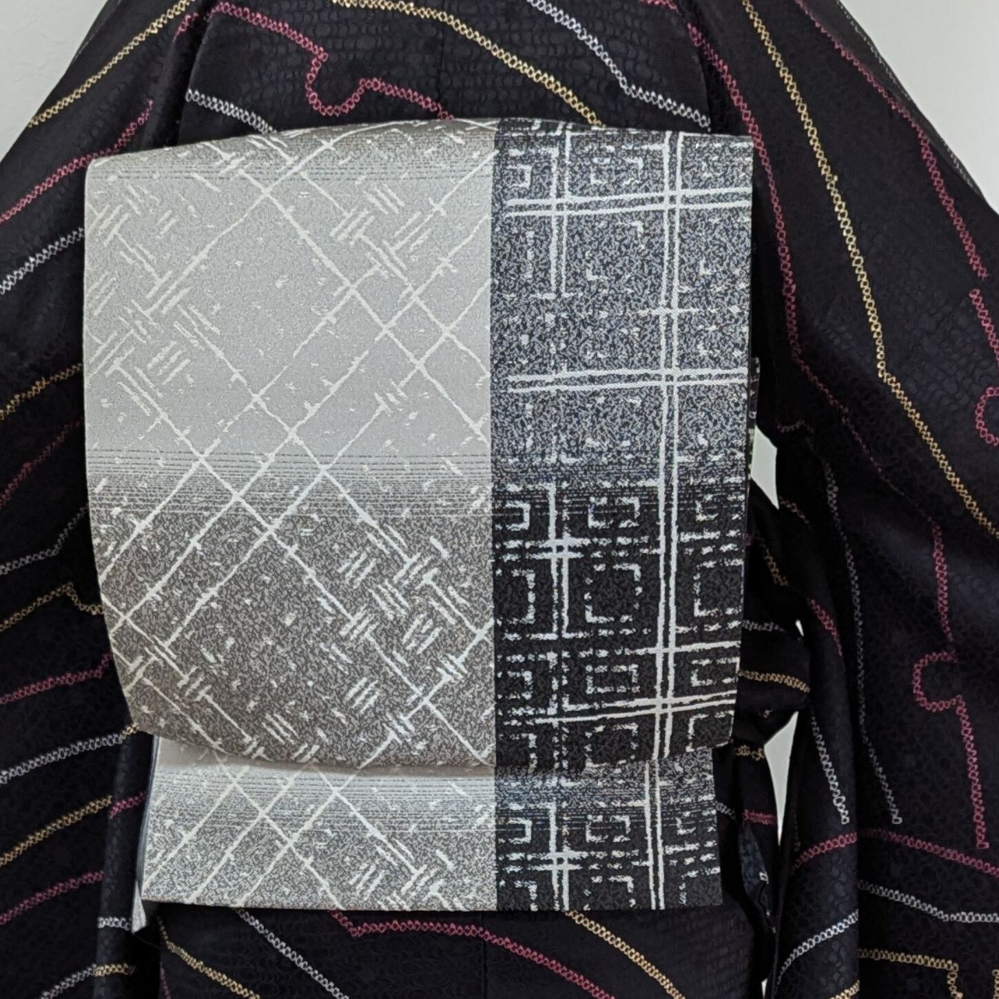 【COOL】袋帯 六通 正絹 西陣紹巴織 アシンメトリー 鋼板柄 黒✕グレー