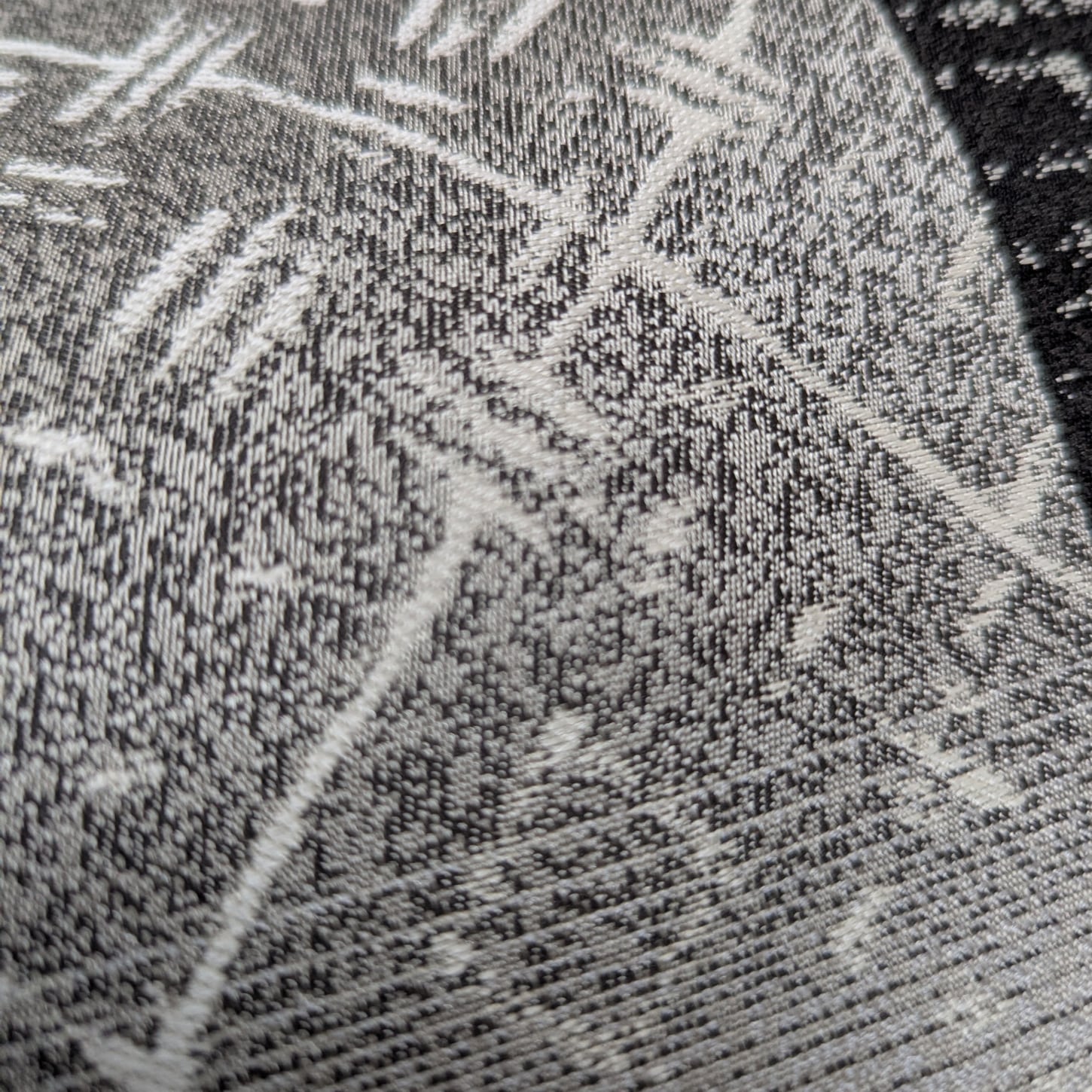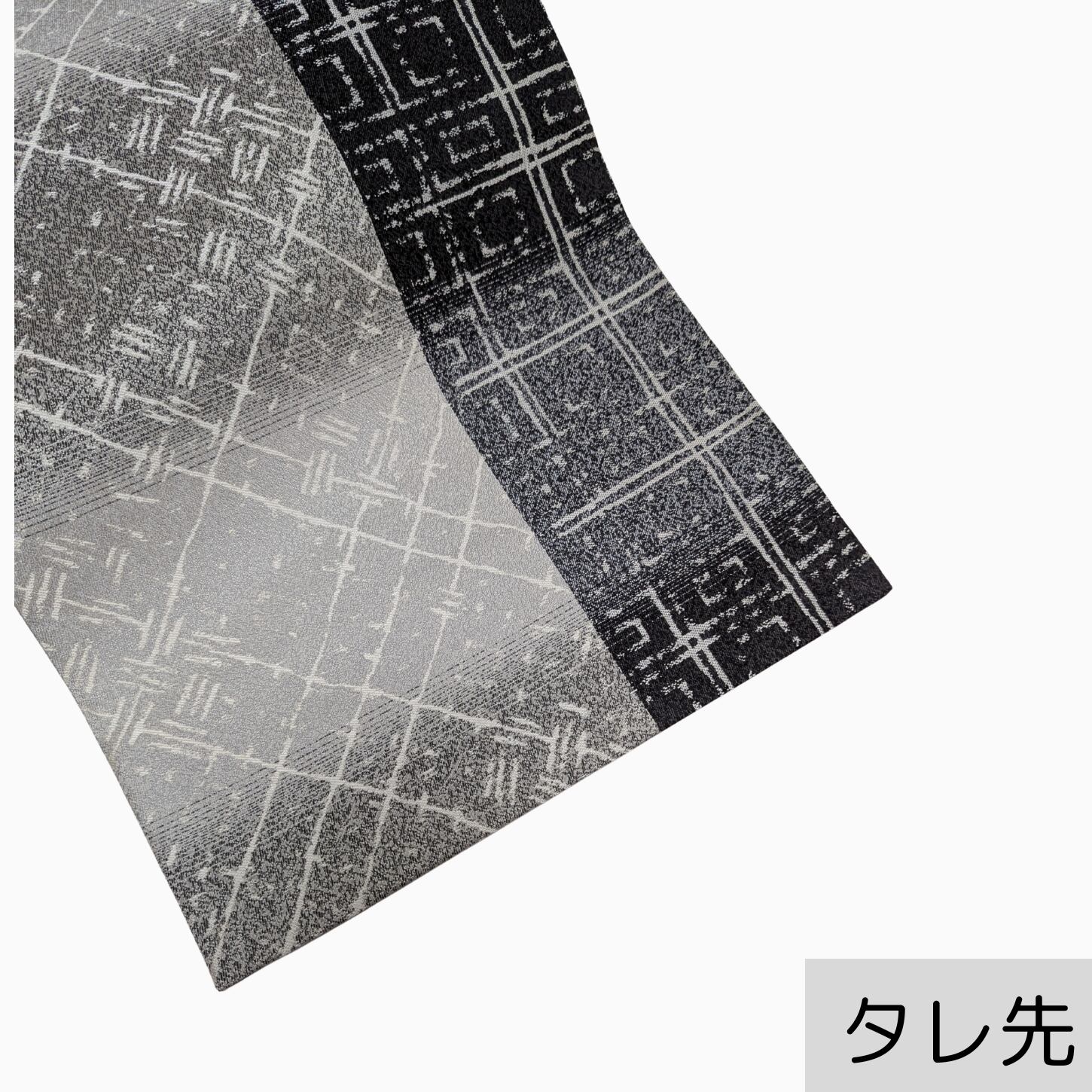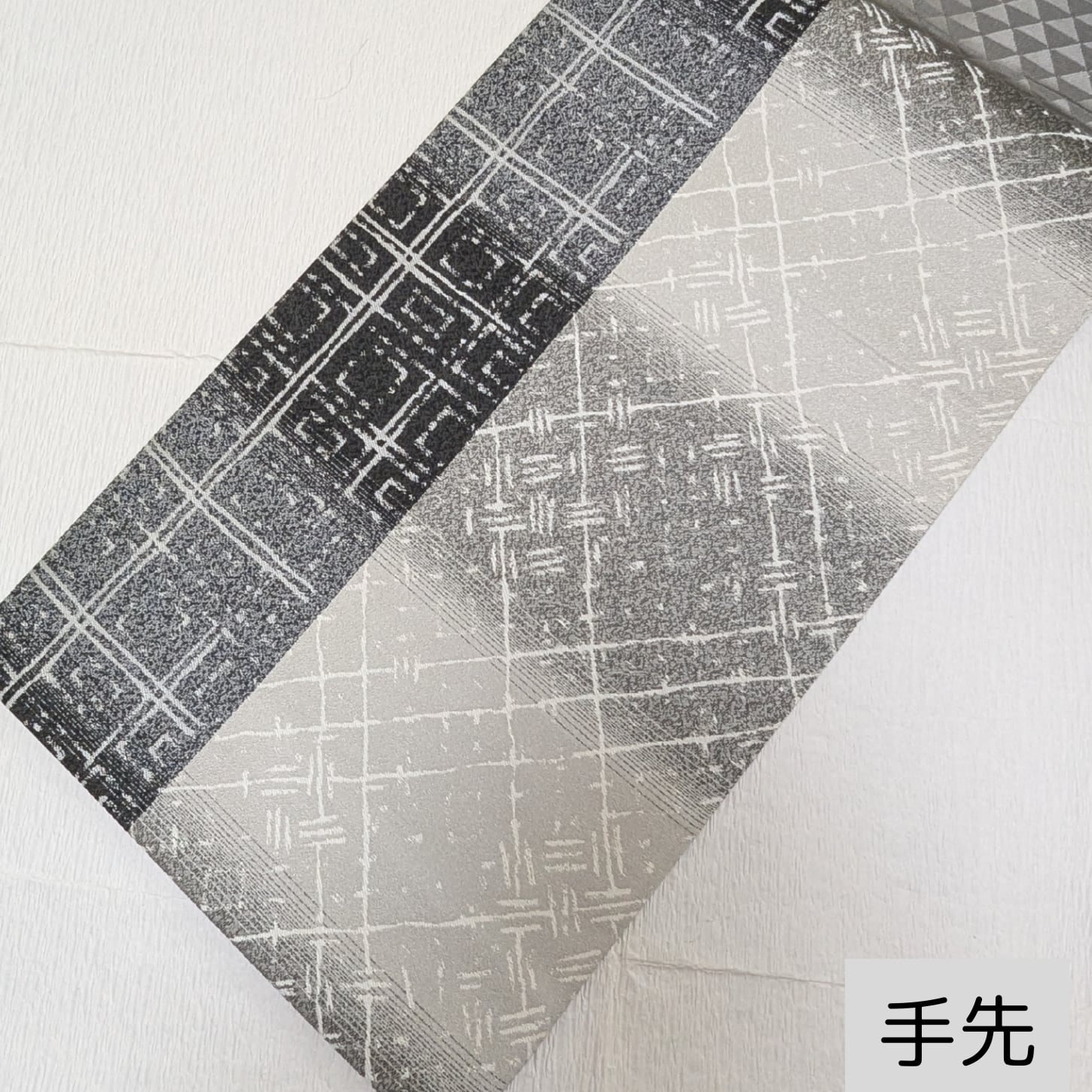 【COOL】袋帯 六通 正絹 西陣紹巴織 アシンメトリー 鋼板柄 黒✕グレー