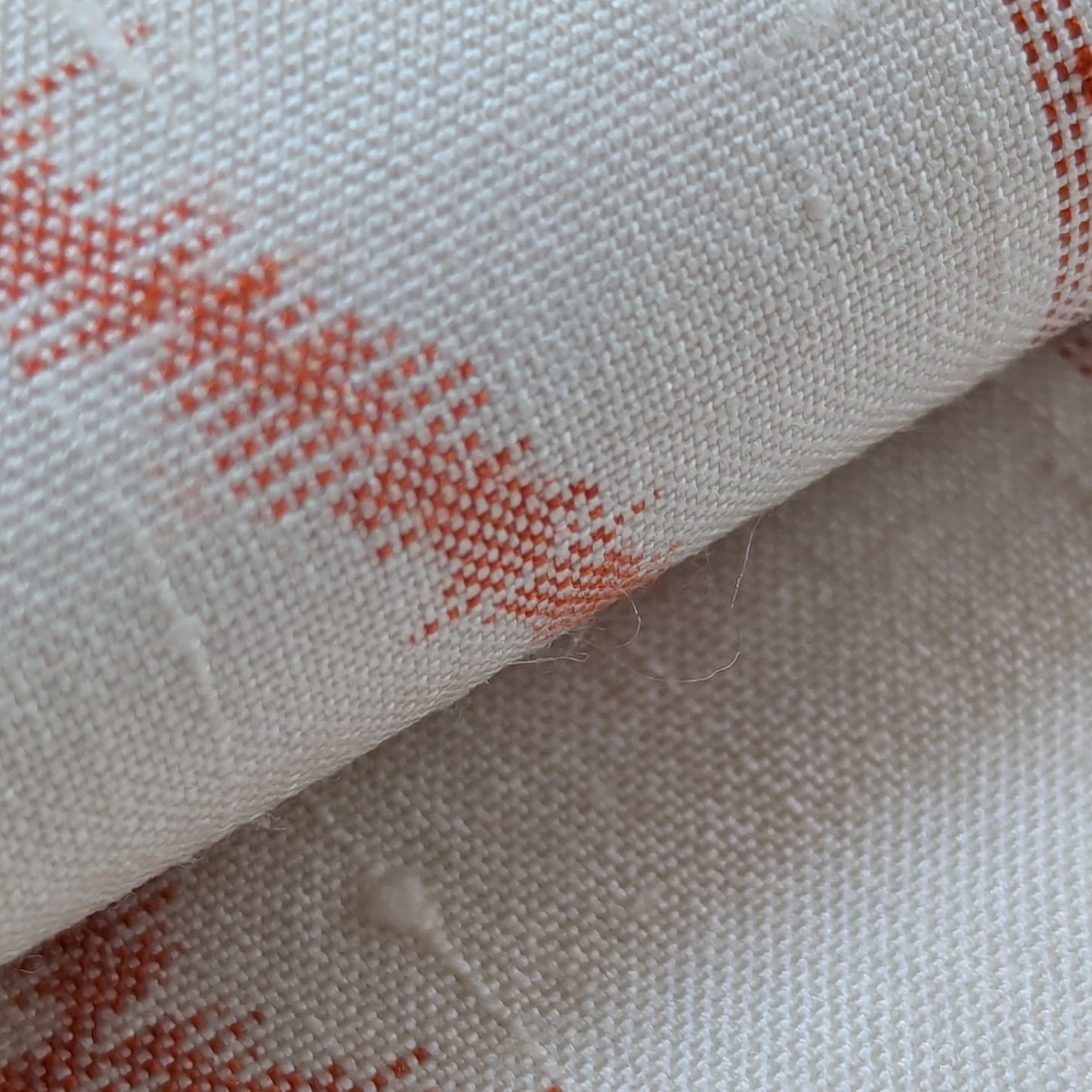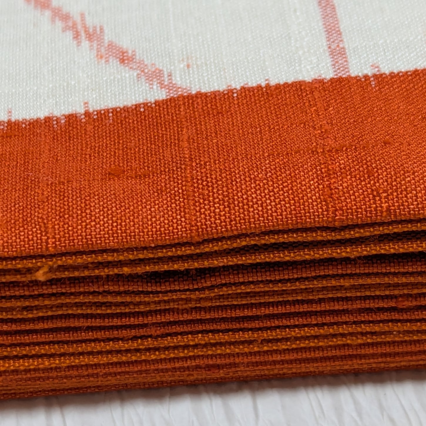 【手織り】京袋 正絹 全通 麻の葉模様織出し 生成色✕レッドブラウン