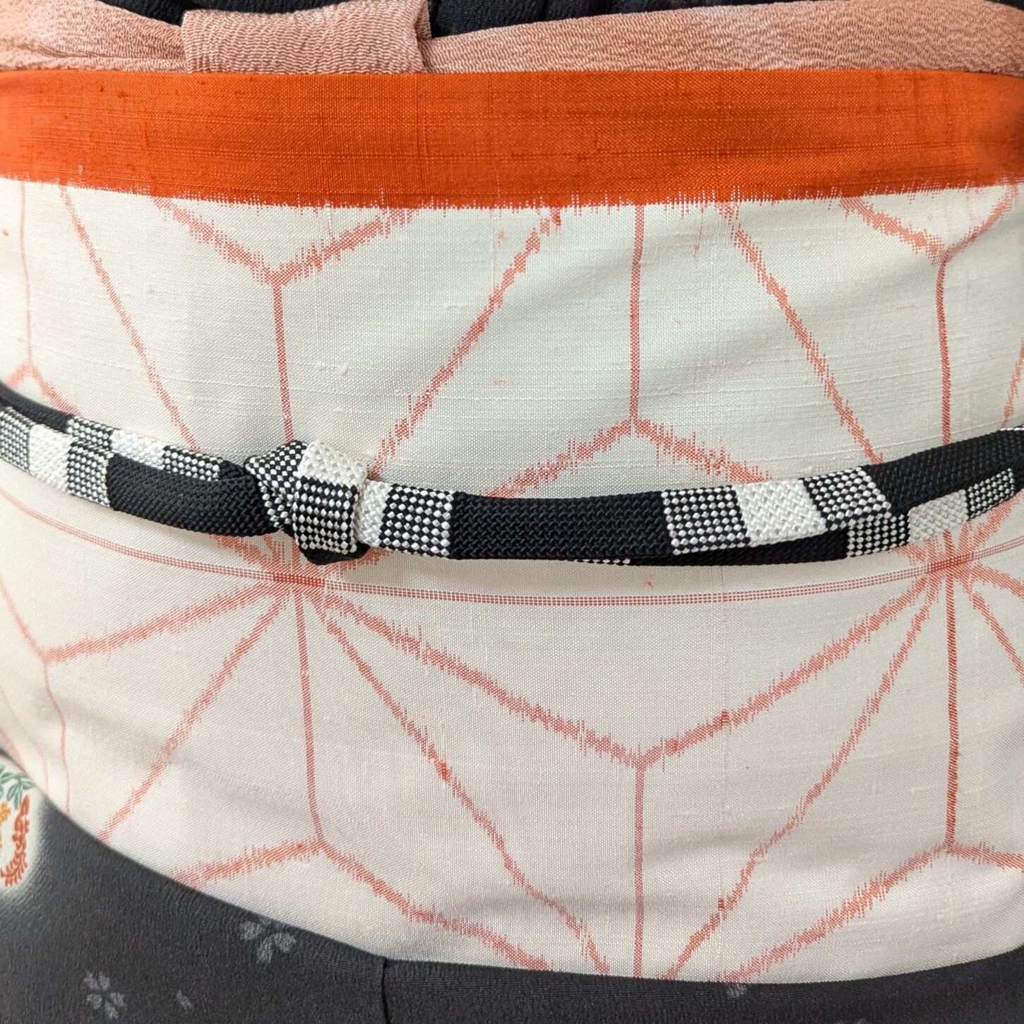 トールサイズさん向けのスタイリングとして、画像では帯とコントラスがつくように着物と合わせた黒系の帯締めをしています。