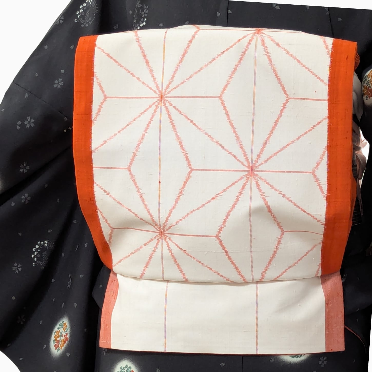 古典的な麻の葉柄ですが、帯端にボーダーが入ることで、キリッとしたイメージに。
