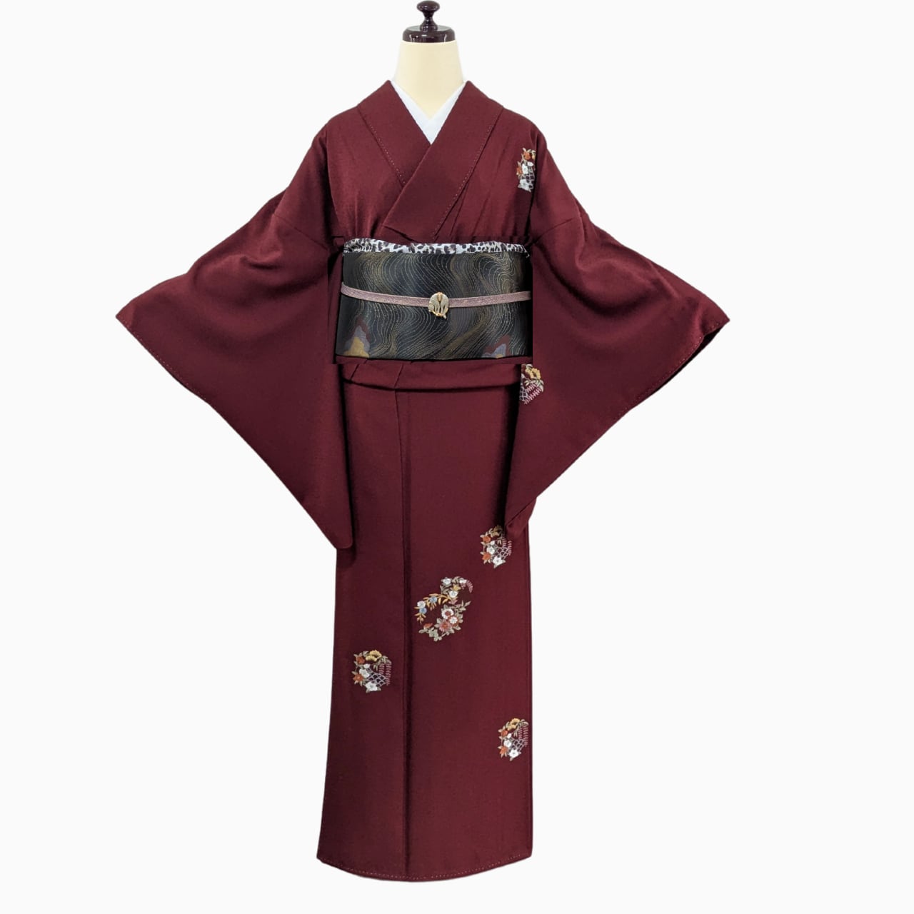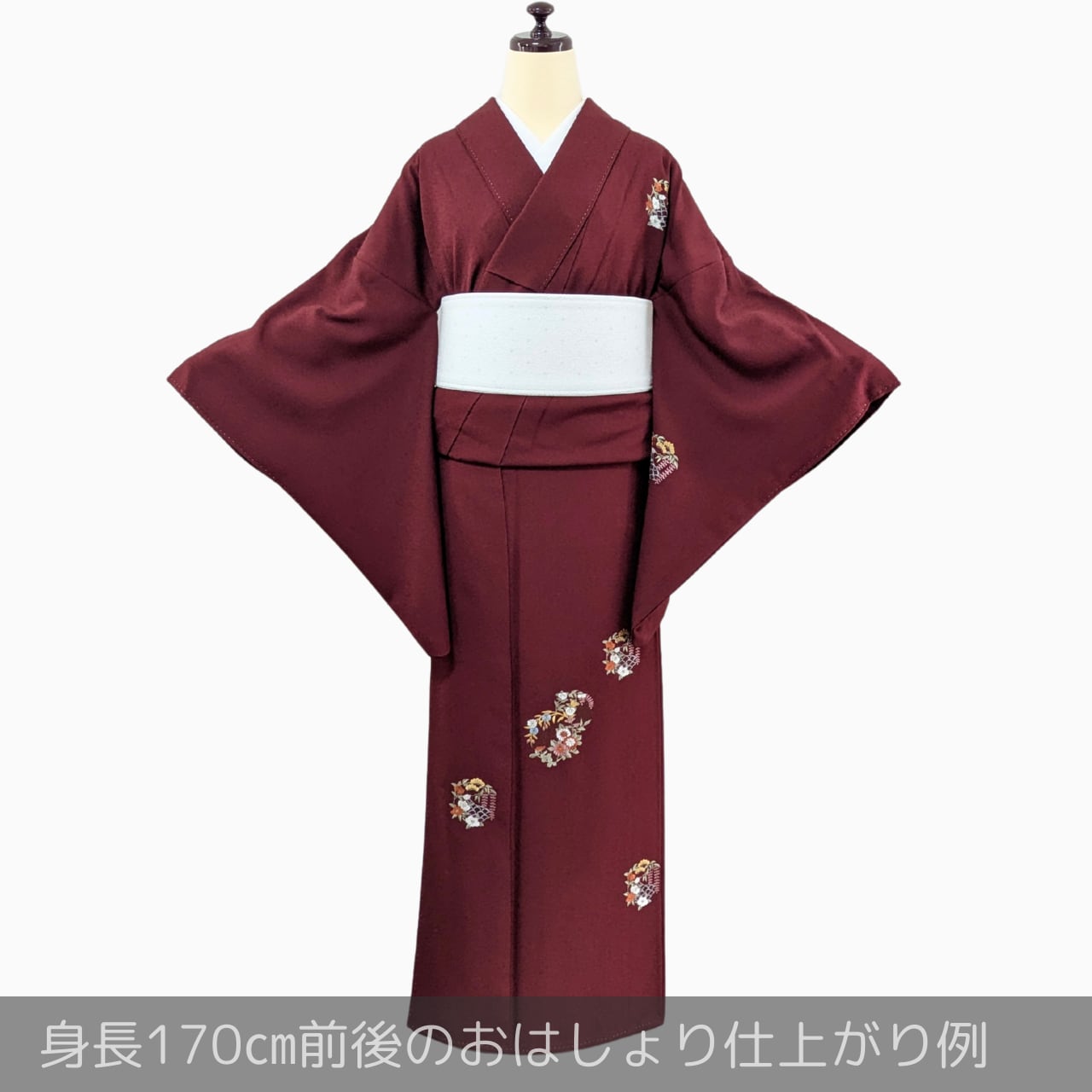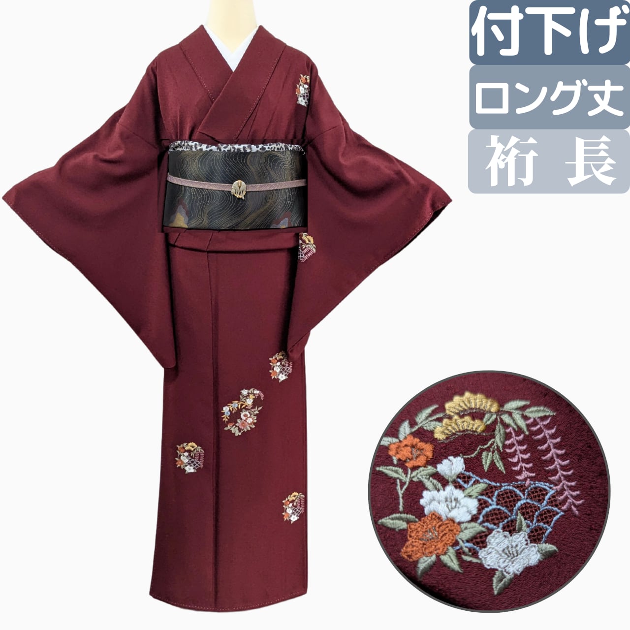 【身長165㎝以上の裄長さん安心】付下げ 正絹 袷 四季花刺繍 バーガンディ 丈170裄69.5