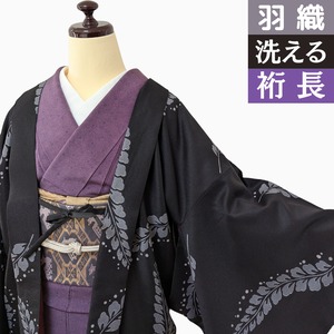 ❐ 黒地に浮かぶ藤の花が、静かな個性を添える洗える長羽織。
