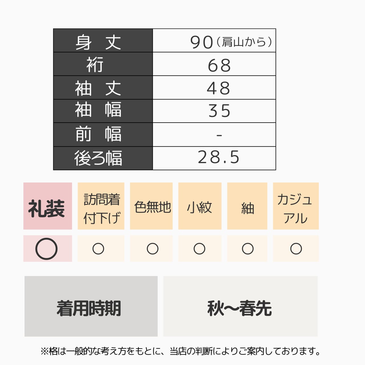 訪問着から紬まで対応できるオールマイティな道行です。