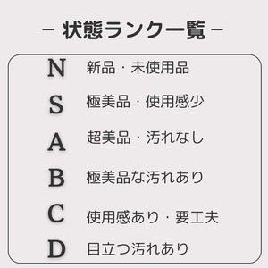 | S | 極美品 | 使用感ごく僅少。状態きわめて良好。 |