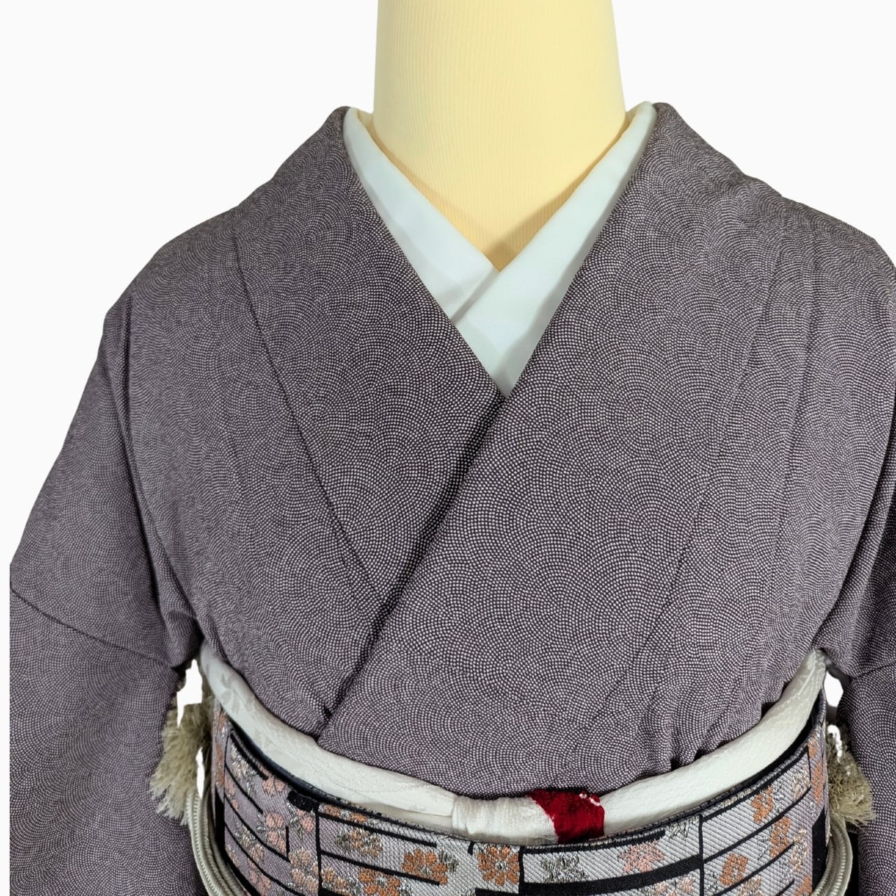 江戸小紋, 鮫文様, 洗える着物, 東レシルック, 紫, 上品, 日常着, 観劇, お稽古着,茶道,街歩き, きれいめ