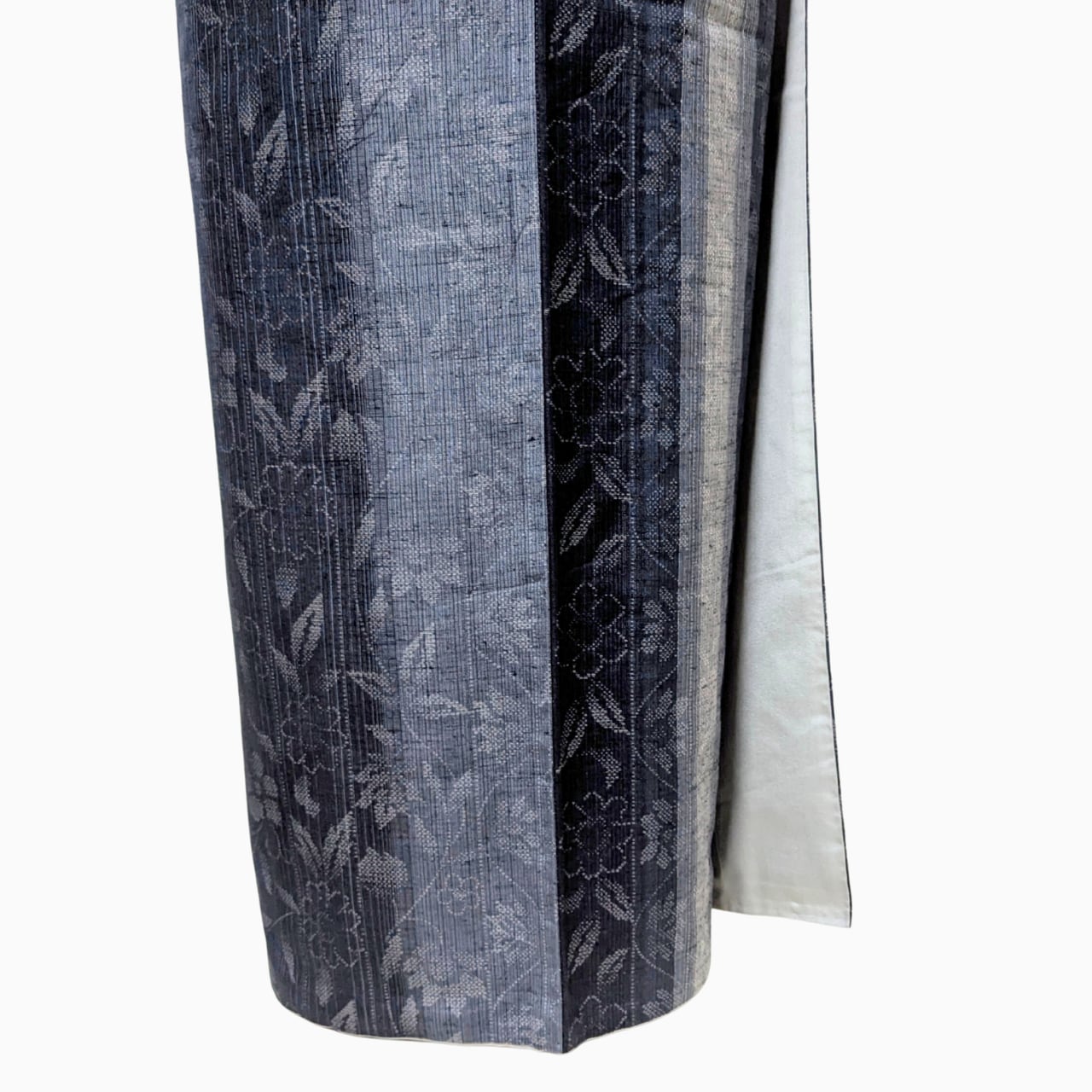 紬, 正絹, 縦縞, モダン, 都会的, ゆったりサイズ, グレー系, 袷, 大人の着物, 日常の着物,普段着物