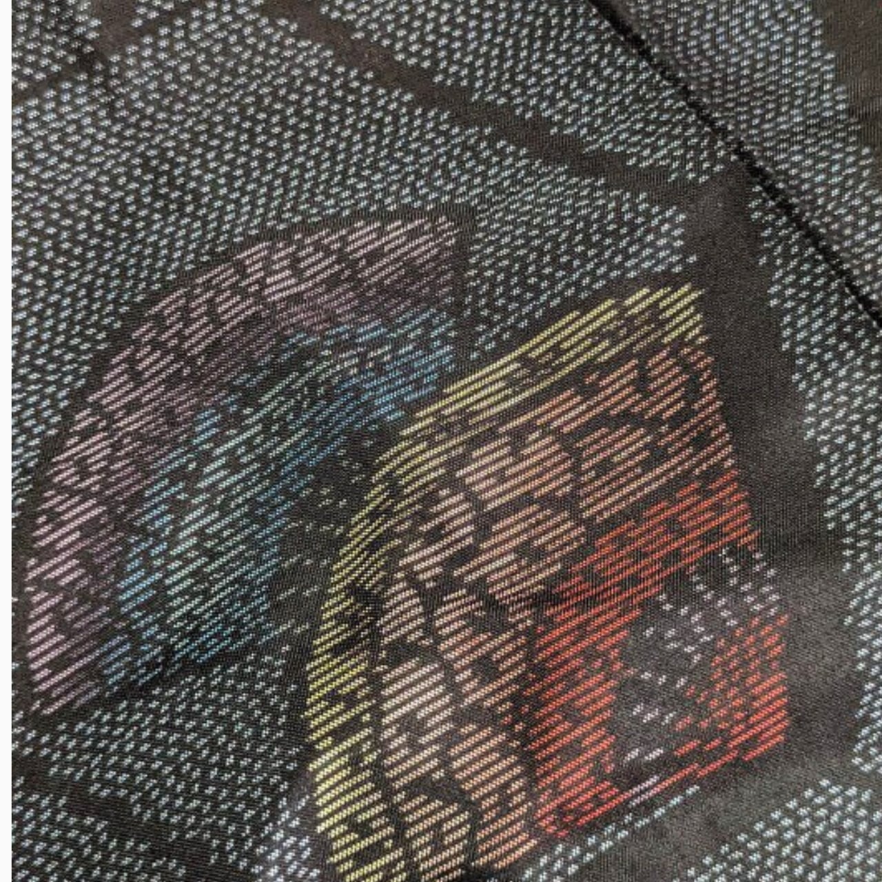 カラフルな扇文様が幾何学的なリズムで配された一枚。