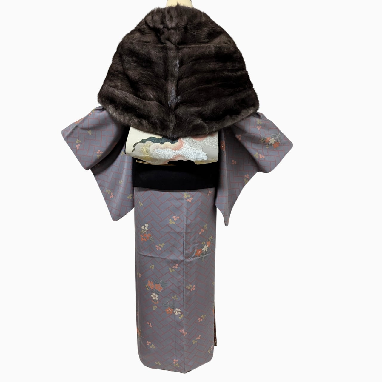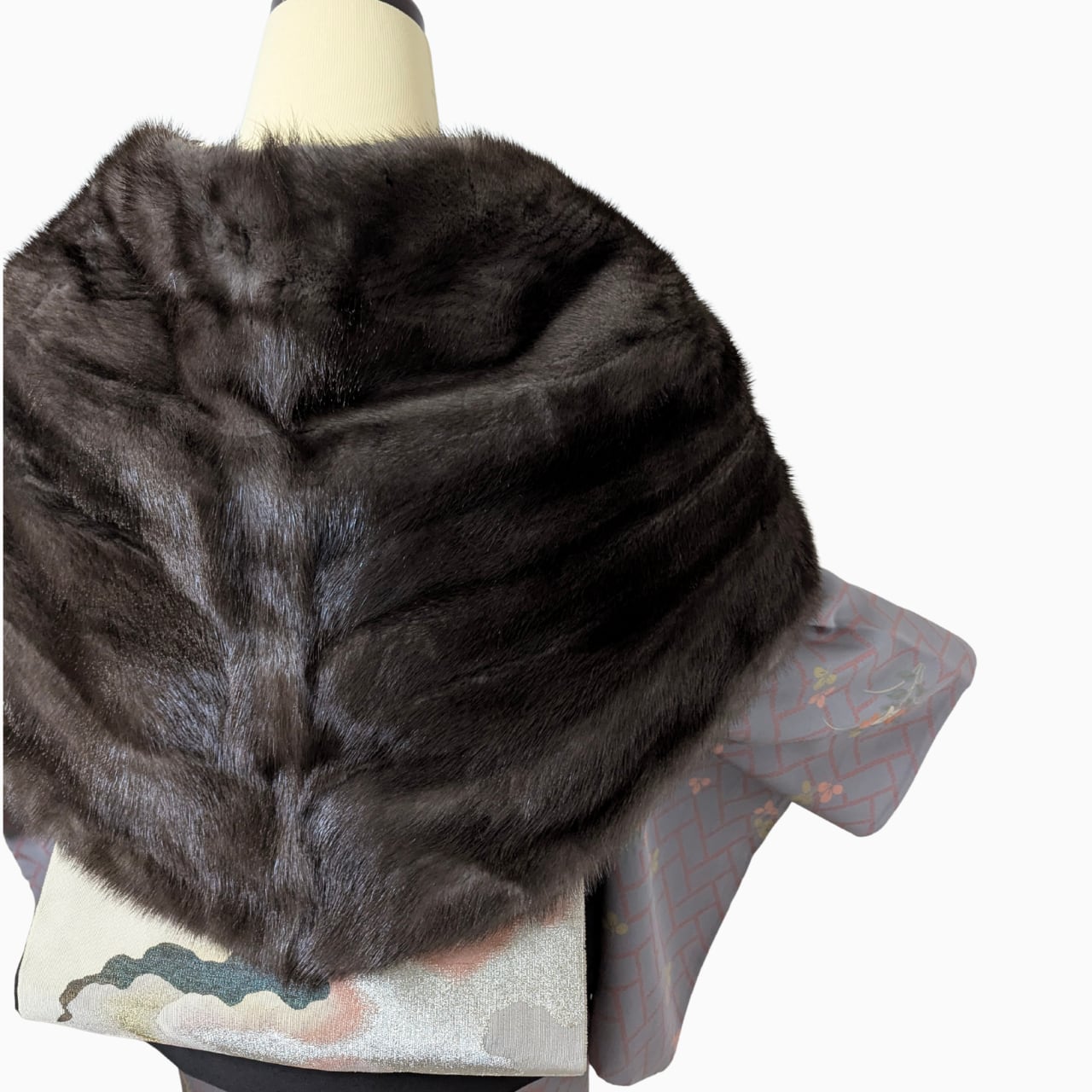 着物ショール, リアルファー, ミンク, 防寒, 冬コーデ, 観劇コーデ, 大人の着物, 女優ショール, 和装小物, 冬の着物コーデ
