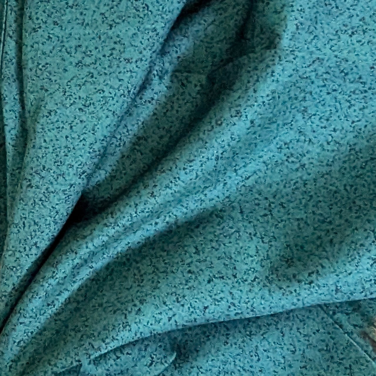 深く青みのある緑の地にまだらに黒色が入っているベース、裾周りや袖は白×黒に染分け