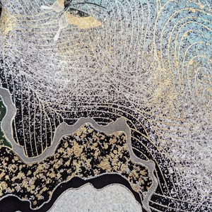 【視線を集める個性派】 訪問着 吹雪染め 正絹 袷 金彩エメラルドグリーン 丈165.5 裄67