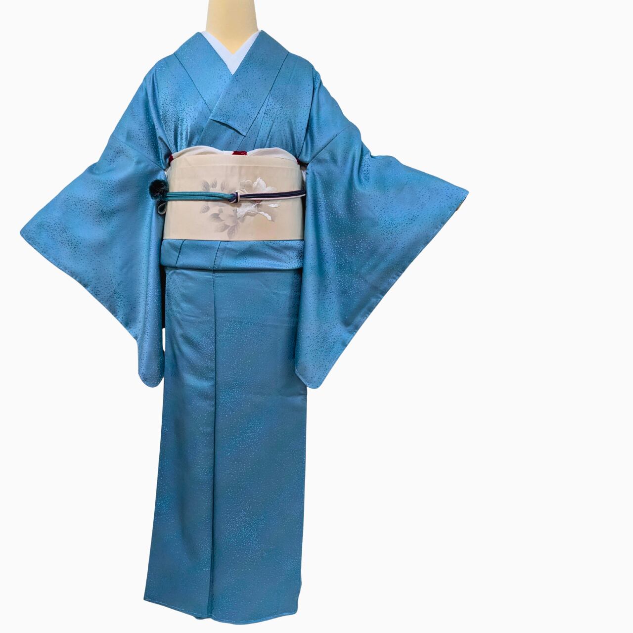 色無地, 正絹, ティファニーブルー, 未使用, しつけ糸付き, 上品, きちんと感, 大人の着物, 着物コーディネート, 観劇