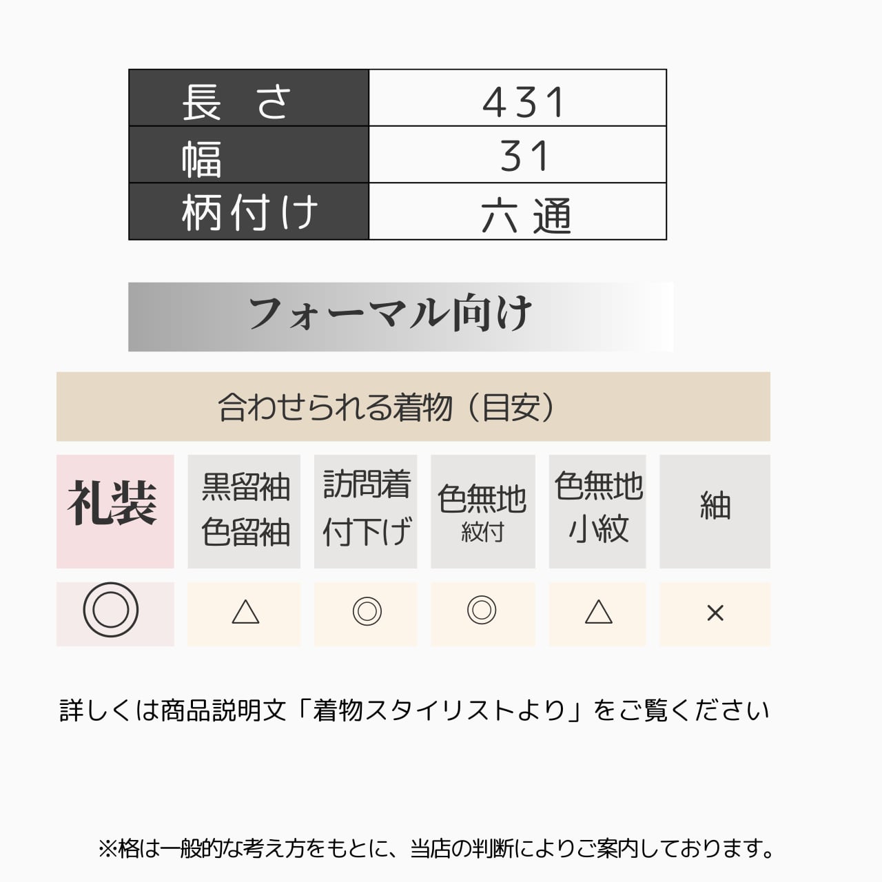 礼装の袋帯として、安心してお選びいただける存在感です。