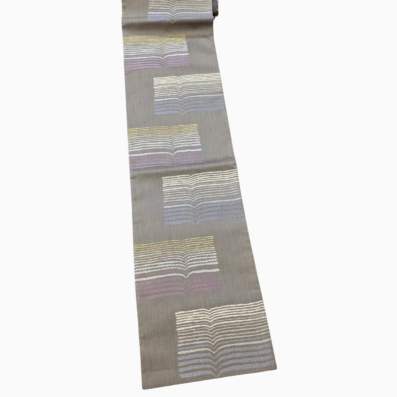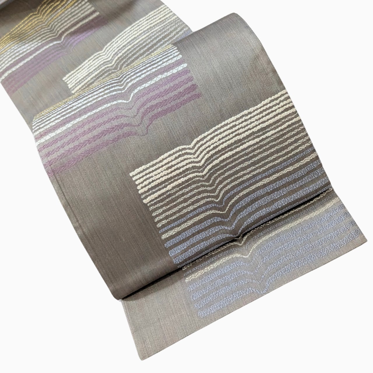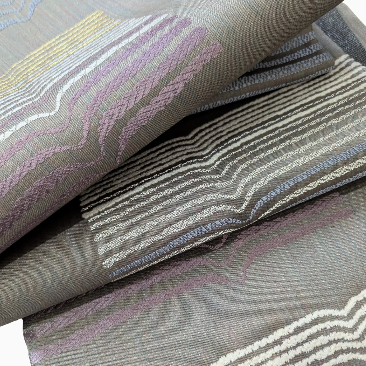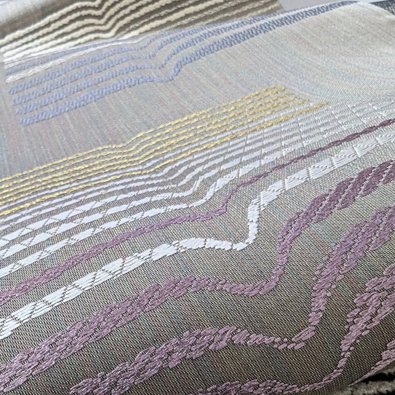 ライトグレーをベースに紫・ブルーグレー・金ラメ糸などが織り込まれ