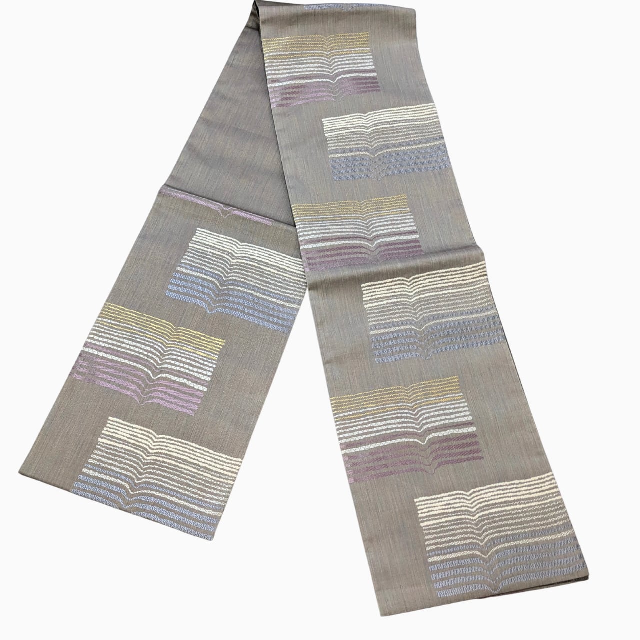 洒落袋帯,正絹袋帯,グレー袋帯,カジュアル袋帯,紬に合う袋帯,小紋に合う袋帯,軽い袋帯