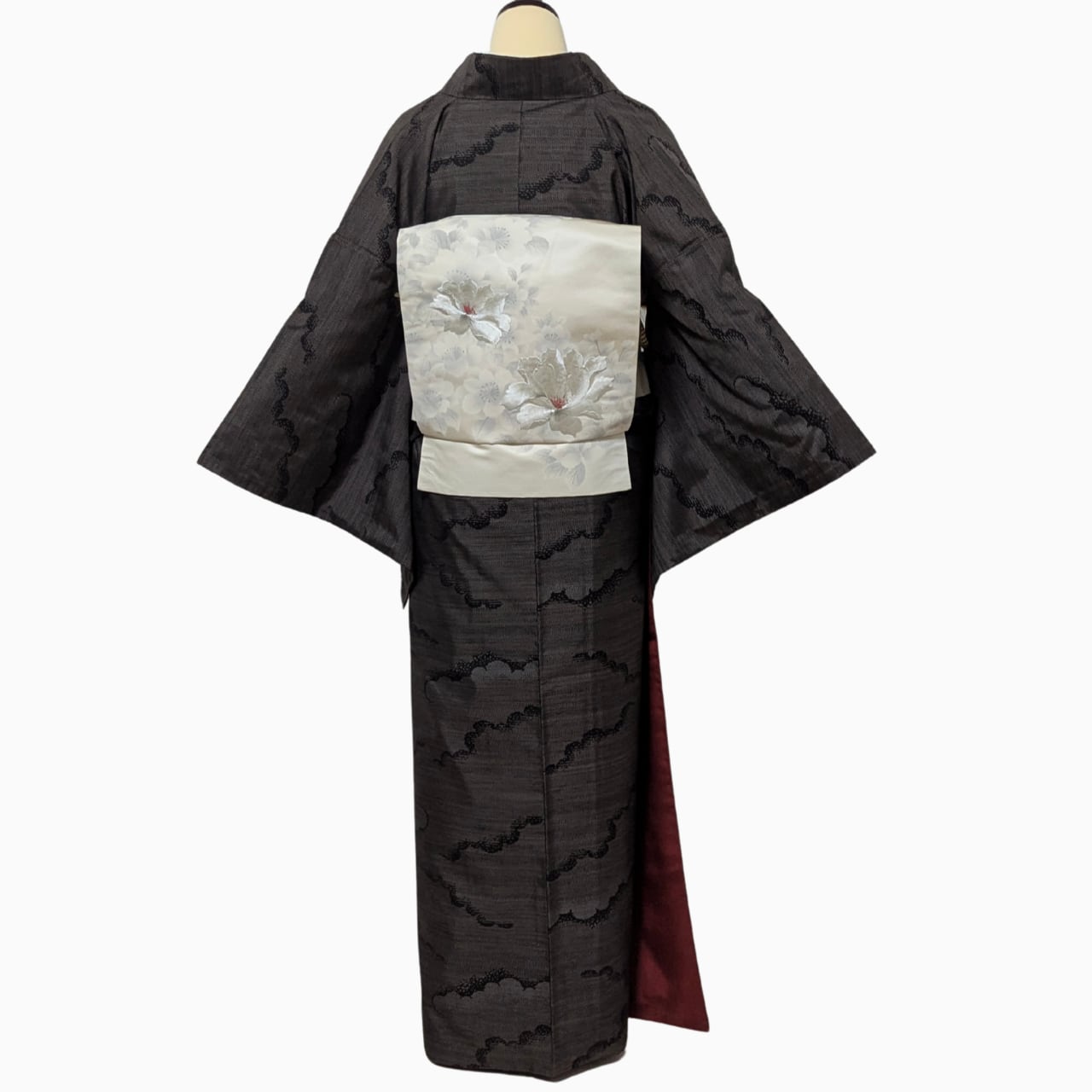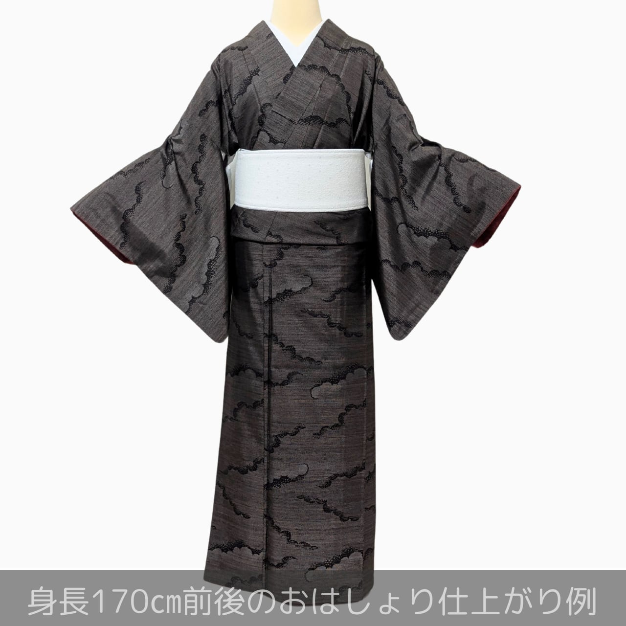 【帯で印象が変わるモダン紬】紬 正絹 袷 雲型文様 大島紬系質感 丈164裄68