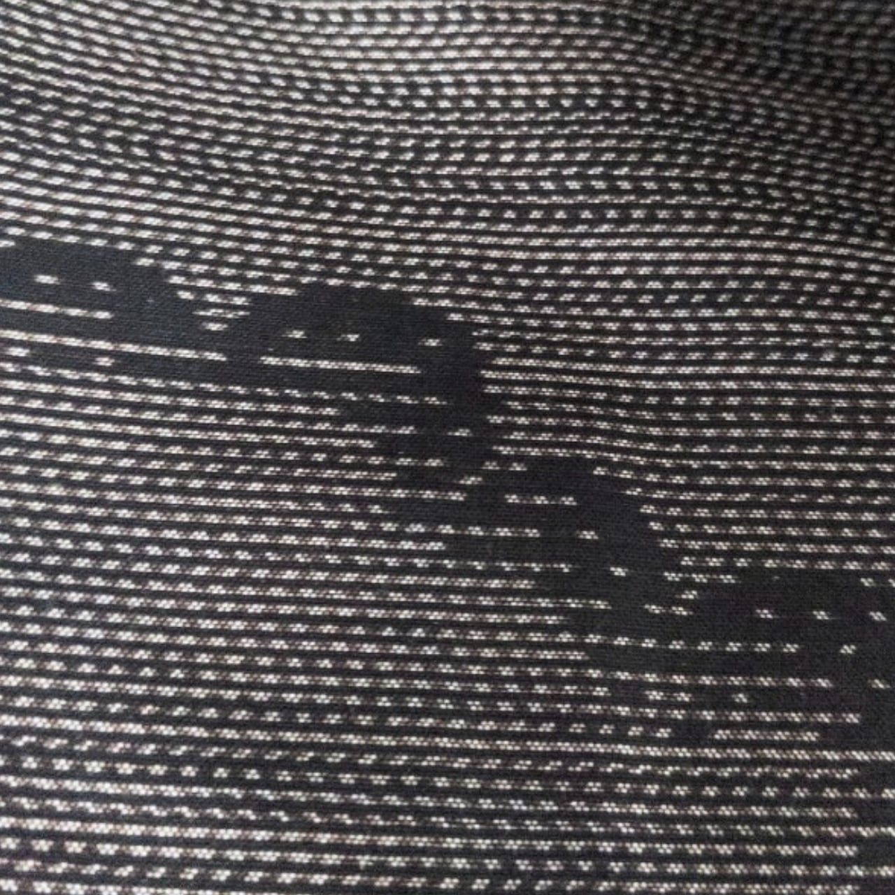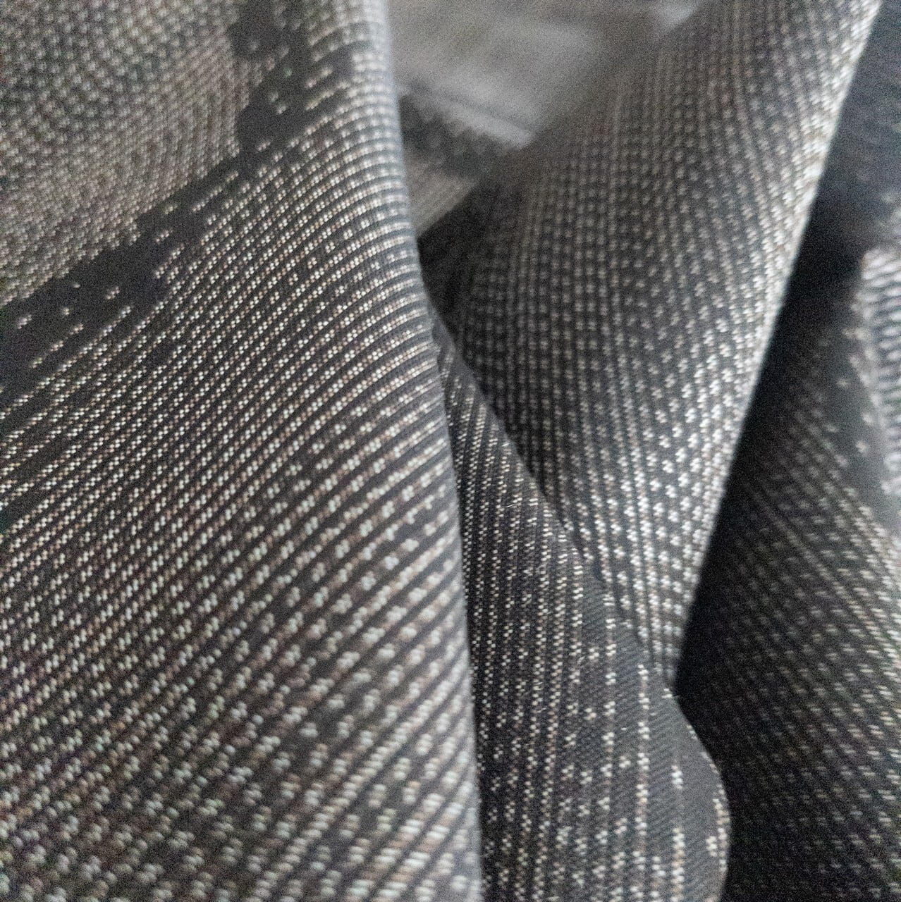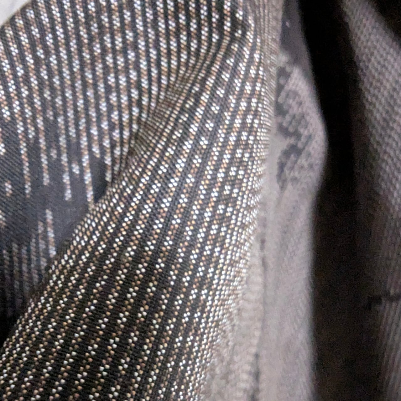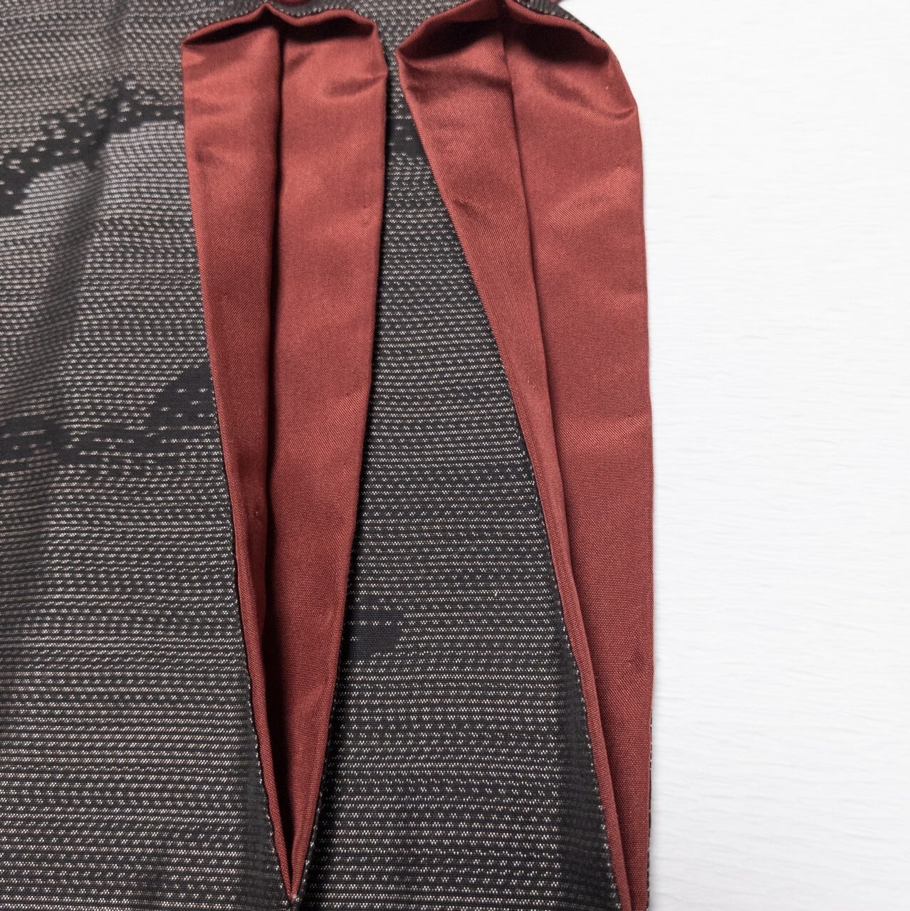 焦げ茶と黒の2色に見えますが、実は焦げ茶の部分は多色。遠目で見て焦げ茶に見えて黒の柄部分が浮かび上がります。