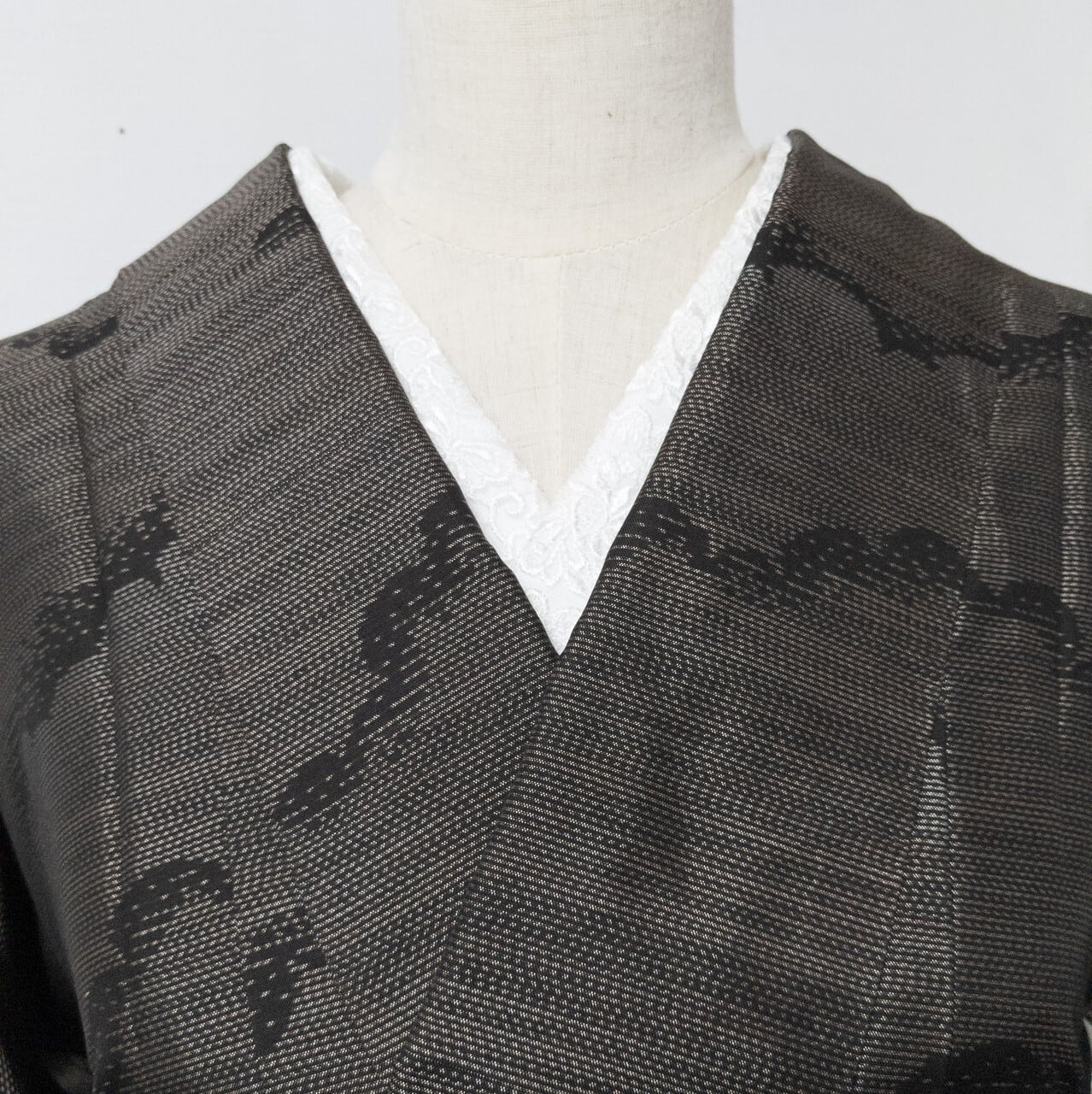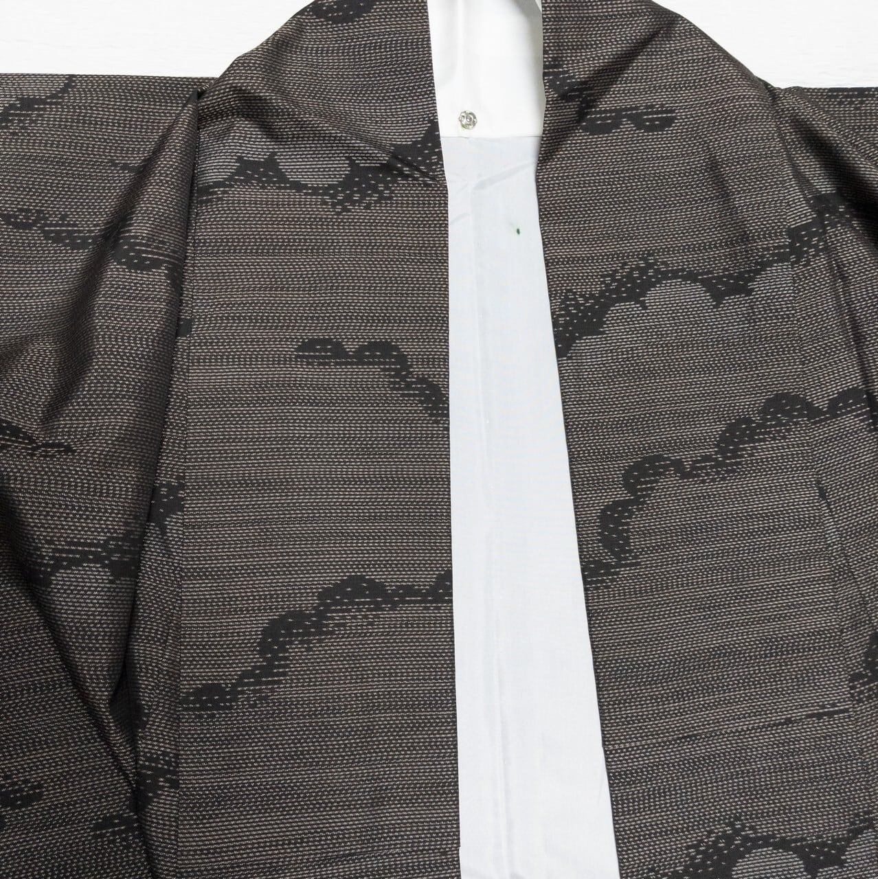 紬, 正絹, 袷, ブラウン系, 雲型, ワントーン, 裄長, モダン, カジュアル, 通年向き