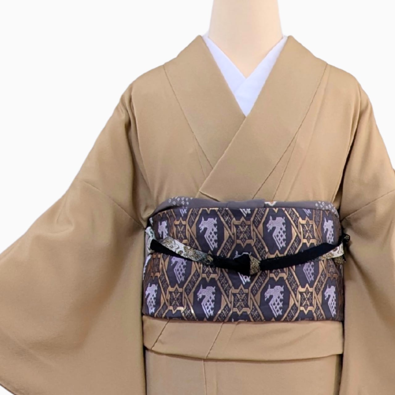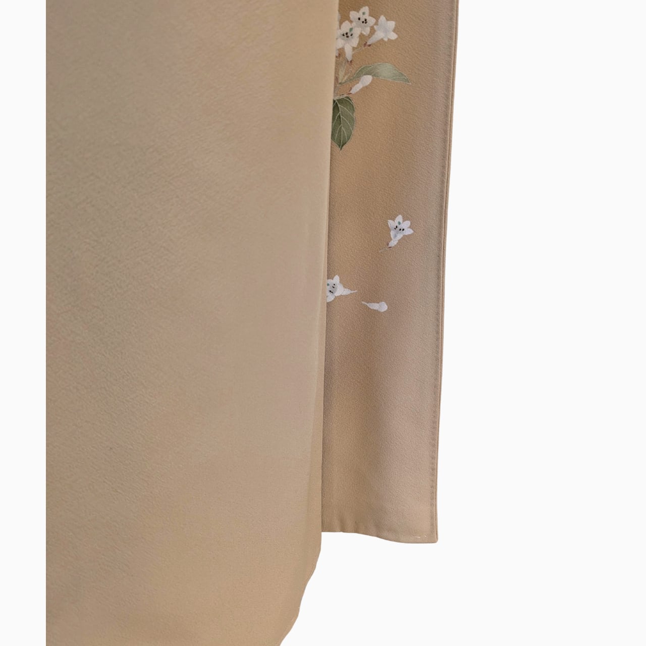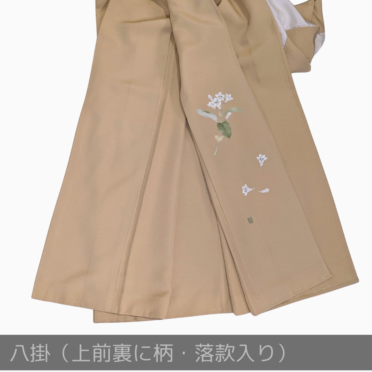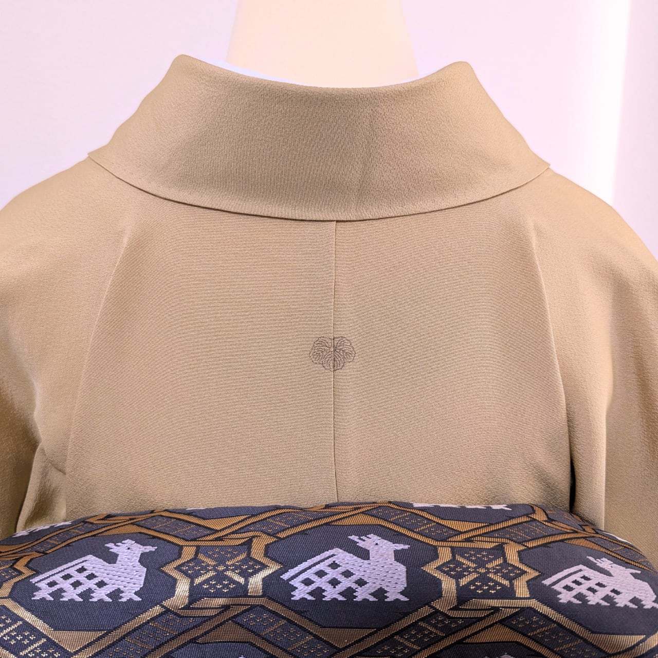 色無地, 正絹, イエローベージュ, 袷, 縫い紋, 未使用, フォーマル, 式典向き, 上品, きちんと感