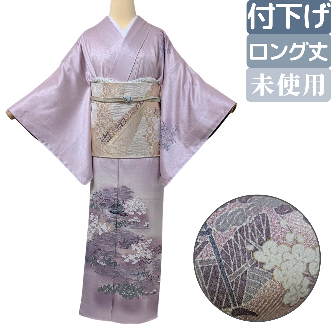 【きちんとした場で一歩引いた上品さ】付下げ 正絹 袷 淡紫 古典柄丈165 裄64