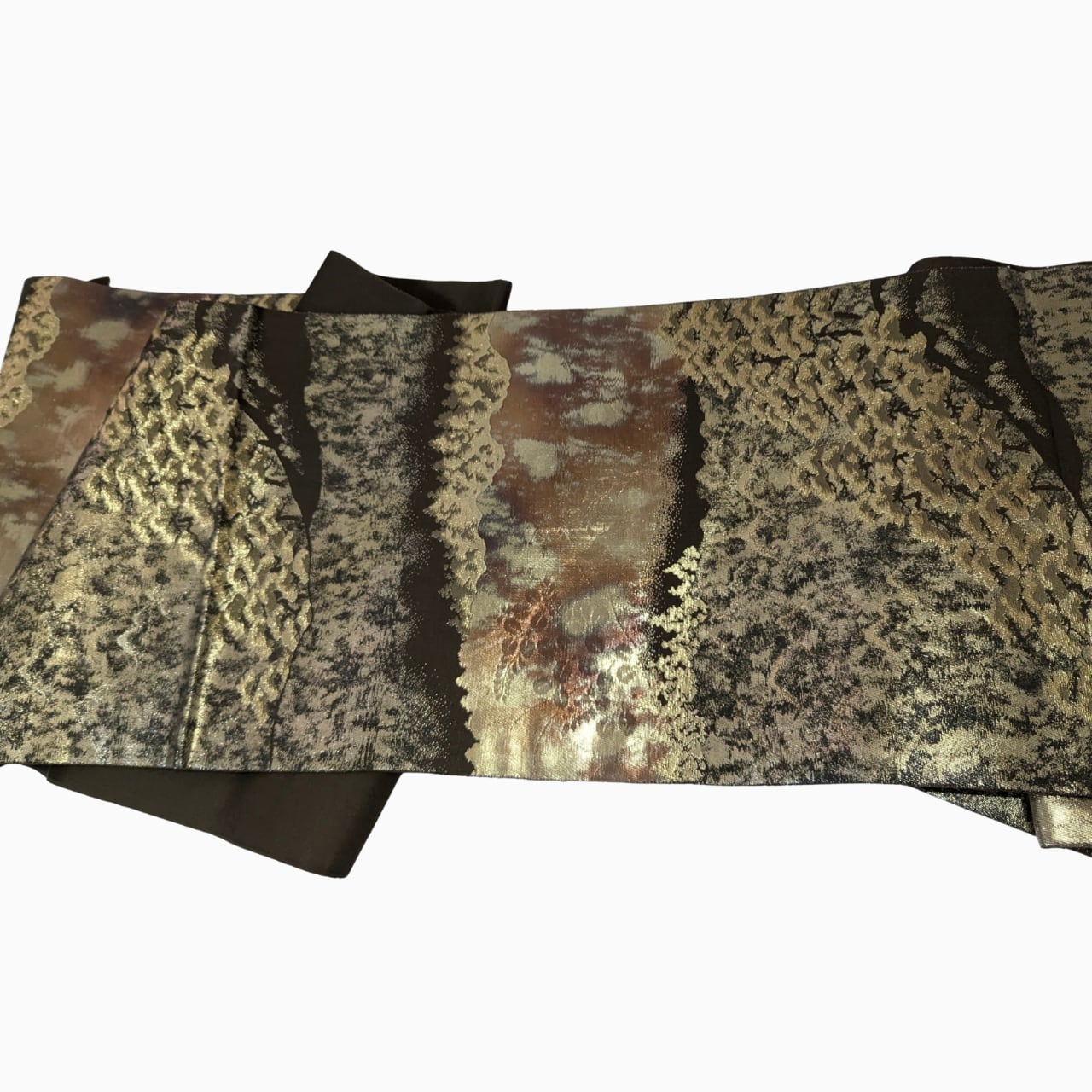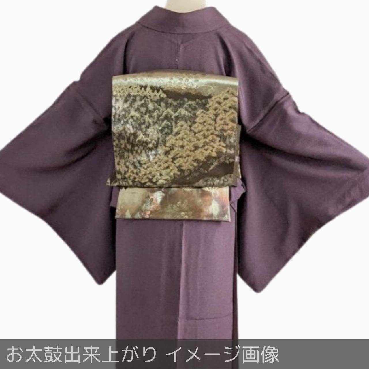【控えめな礼装感の渋金】袋帯 正絹 六通 引箔 森林柄 ゴールド カーキ