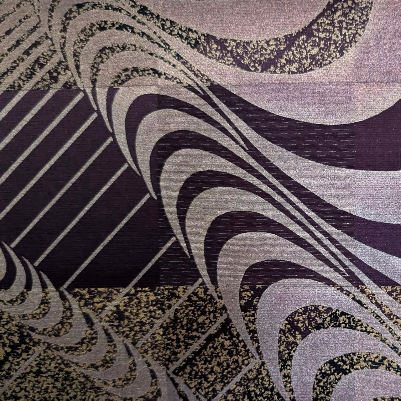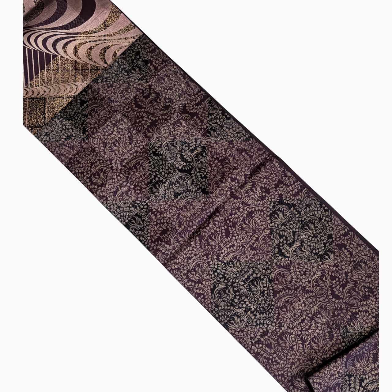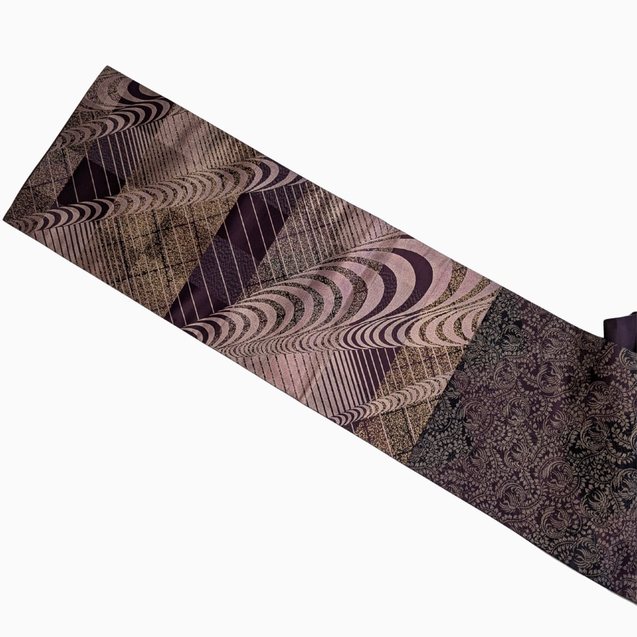 洒落袋帯,袋帯寄り,正絹帯,六通柄,紫系帯,モダン帯,抽象柄帯,付下げに合う帯,色無地に合う帯,観劇コーデ帯