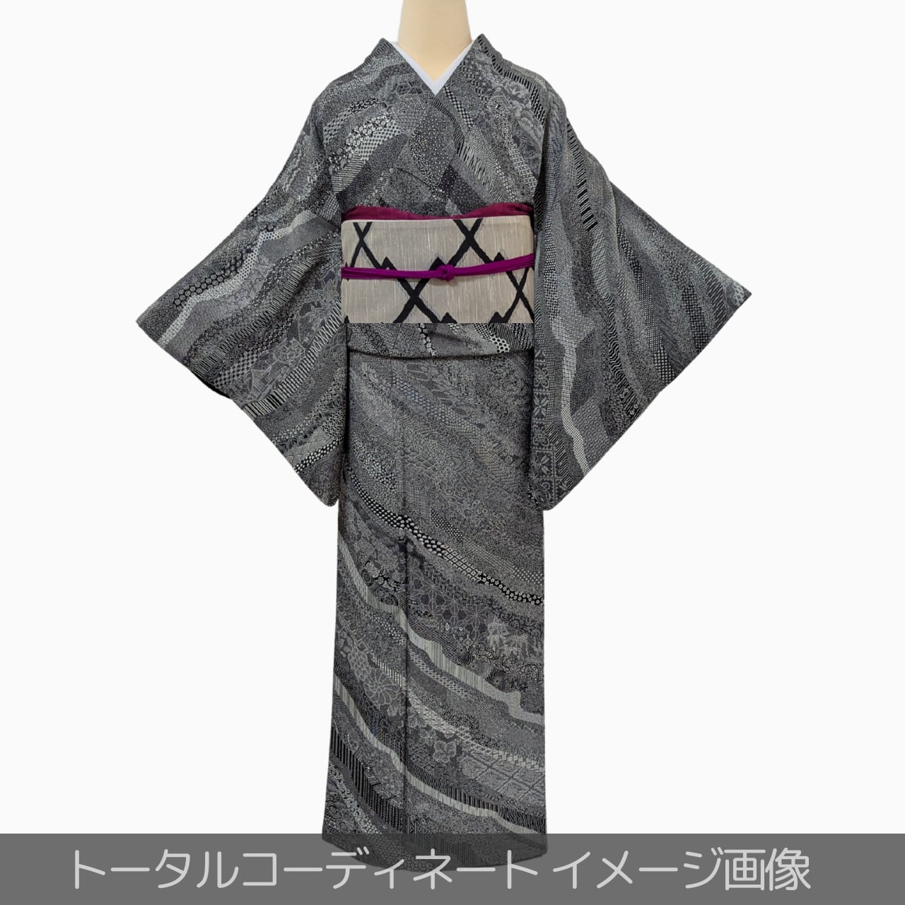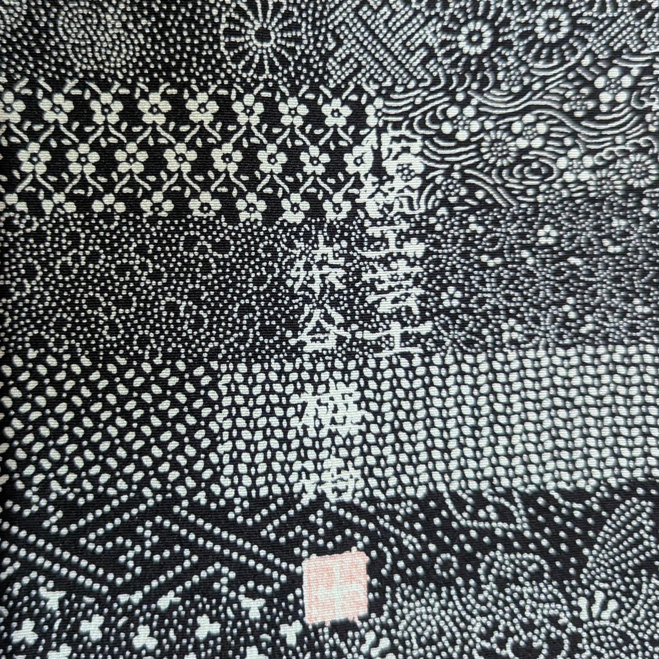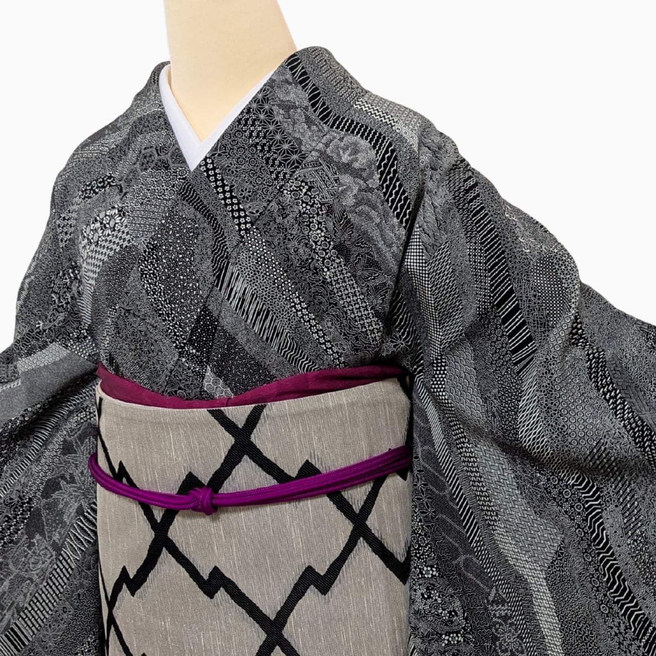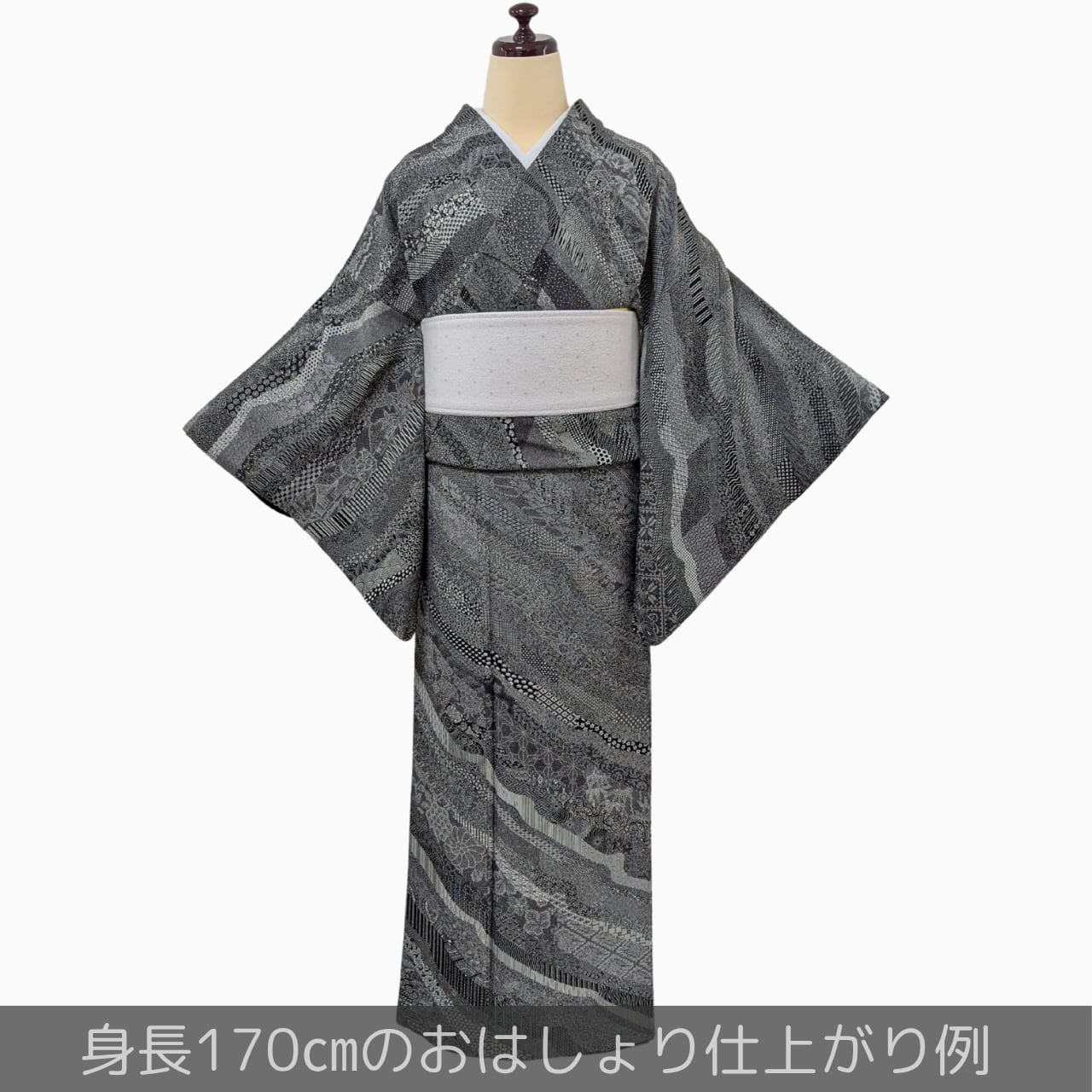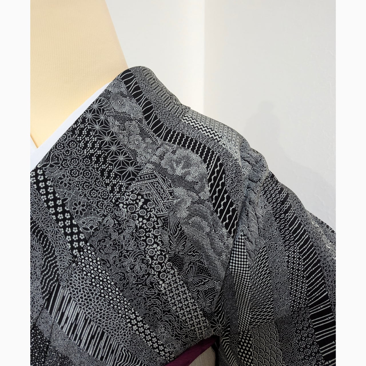 訪問着, 江戸小紋柄, 染谷梅治, グレー系着物, 黒の着物,礼装着物, ゆったりサイズ着物, 裄67cm着物,ふくよかサイズ着物