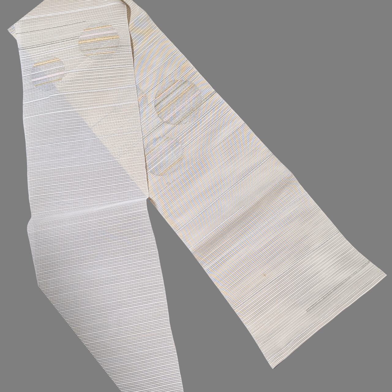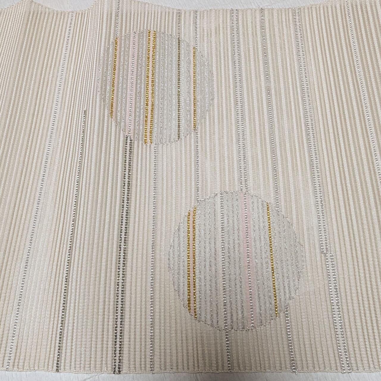 ・生成り色のやわらかな地色に丸紋がすっきり浮かぶ夏帯