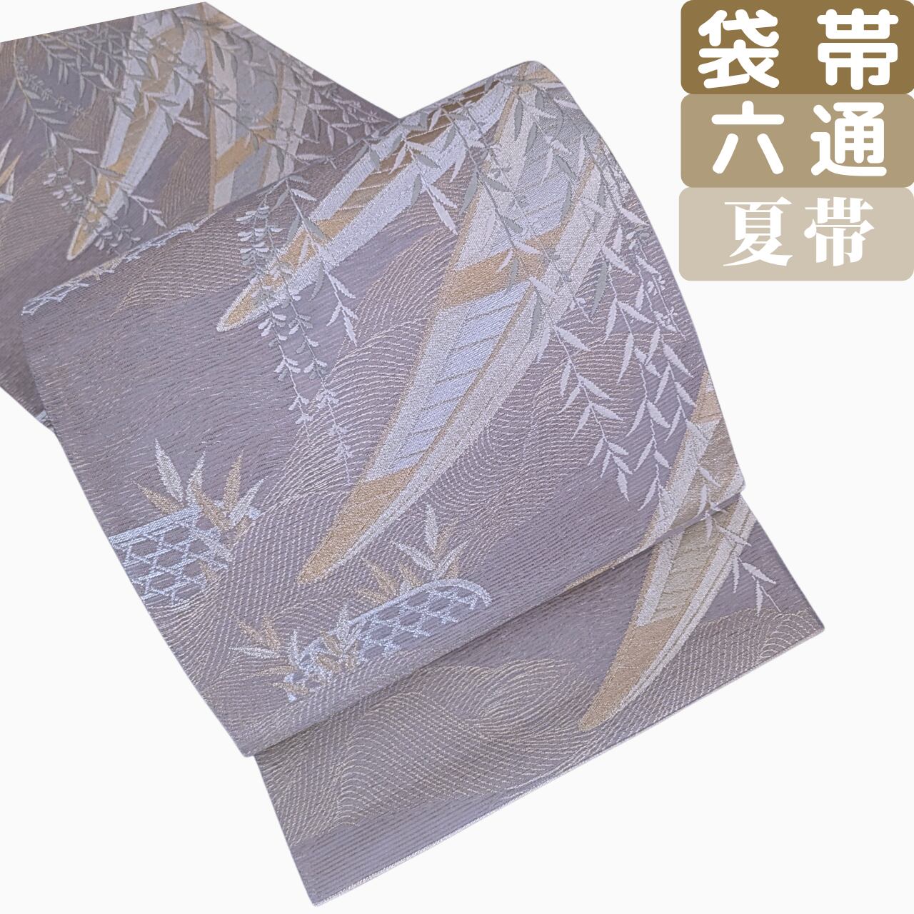 【夏の礼装で迷わない】袋帯 正絹 絽 夏帯 六通 浮船 柳 薄紫 フォーマル向け