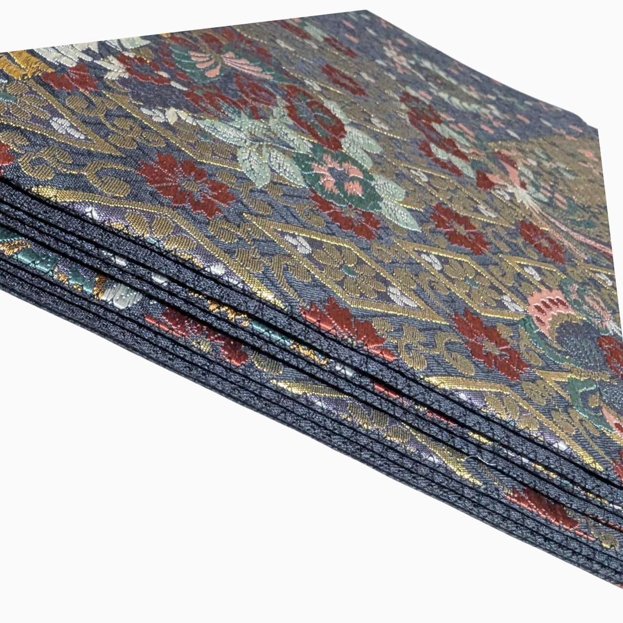 ・黒を基調にした切りばめ風の構成で華文、 花柄、 菱文が華やかに入った一本