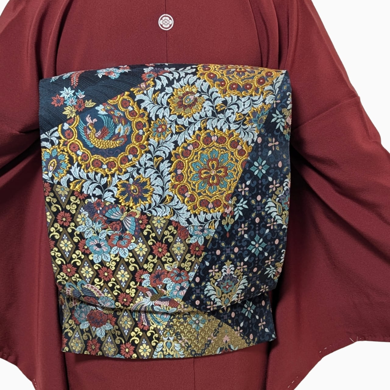 袋帯, 礼装用袋帯, 黒地の袋帯, 六通柄袋帯, フォーマル帯, 訪問着に合う帯, 付下げに合う帯, 古典柄袋帯, 華やかな袋帯, 正絹袋帯