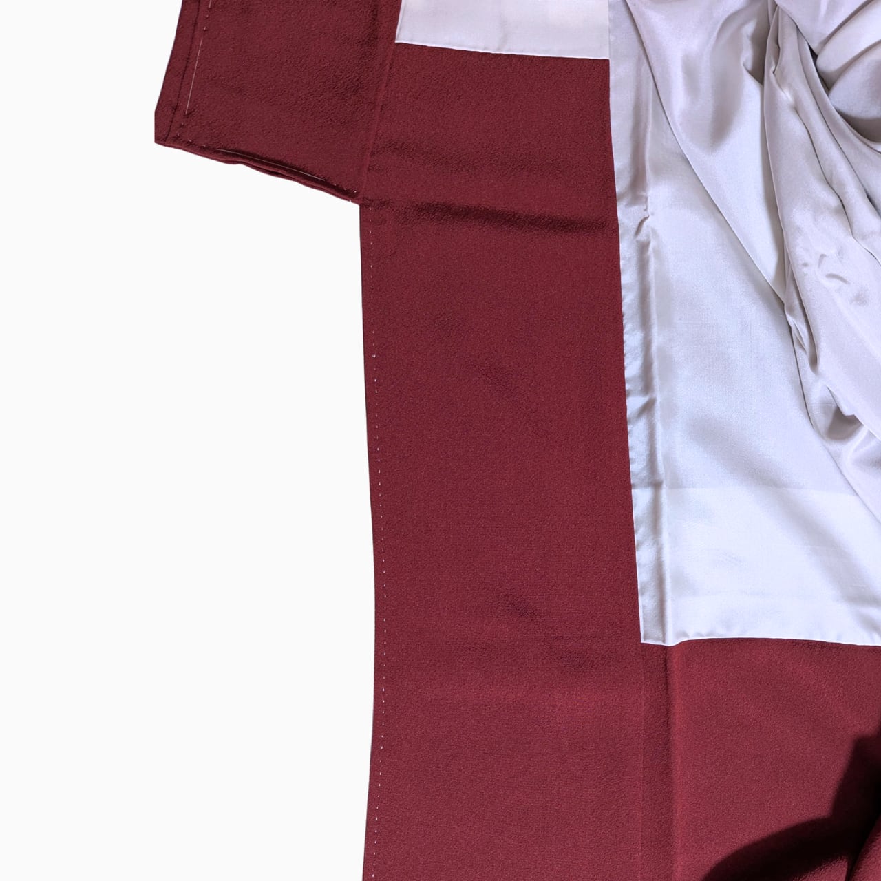 【ちゃんとした場で頼れる深ボルドー】一つ紋 色無地 正絹 袷 ロング丈 裄長 未使用 身丈165.5裄69.5