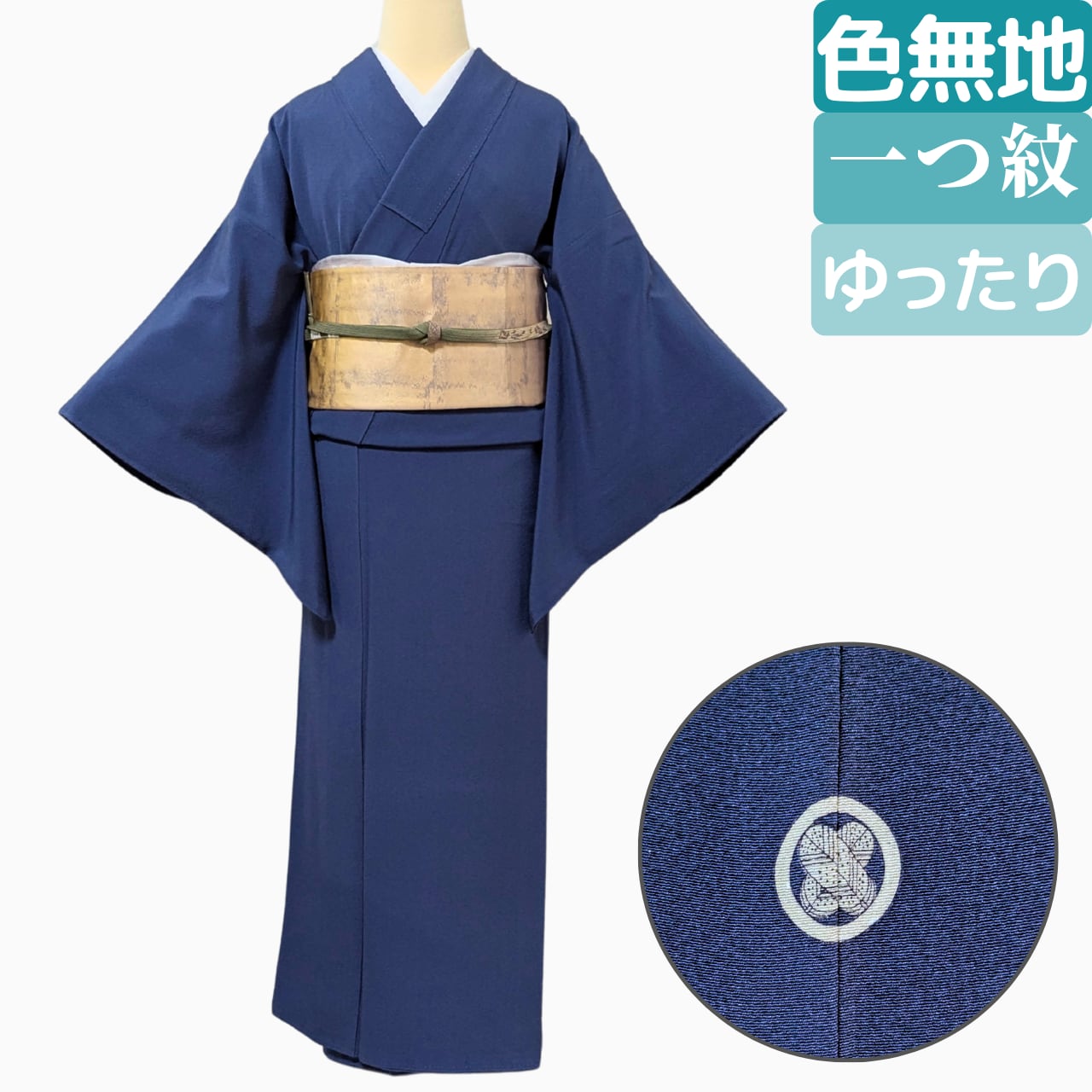■検索補助タグ 色無地,一つ紋,紺色の着物,ゆったりサイズの着物,裄長 着物,入学式 着物,卒業式 着物,ご挨拶 着物,高身長 着物