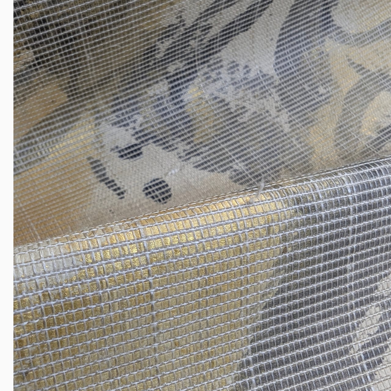 ・ざっくりとした織りと筆描き柄の線、金彩