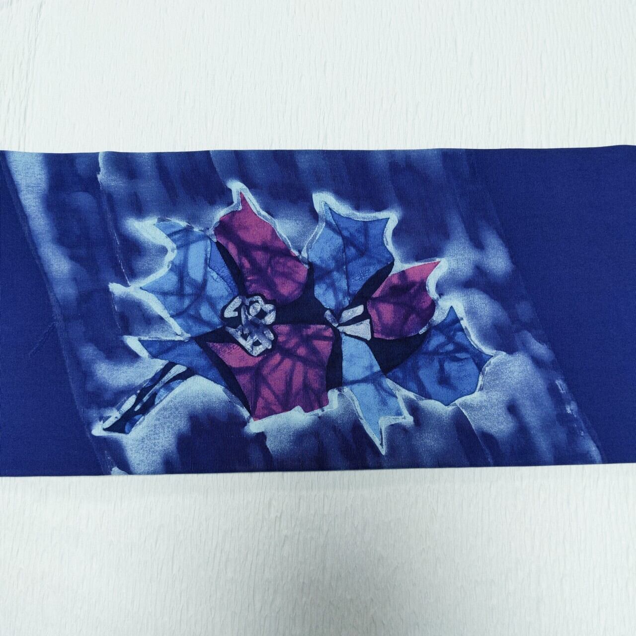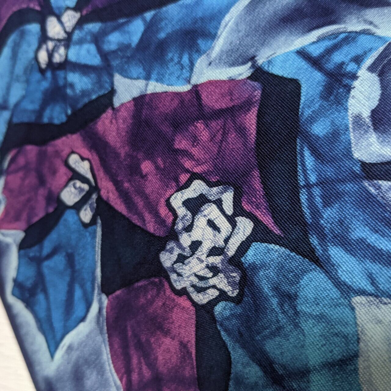 ろうけつ染め調な染めで抽象花柄 紫×濃い水色