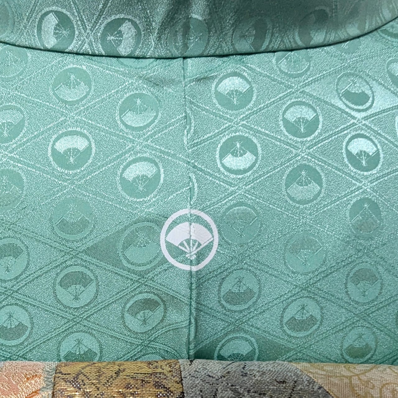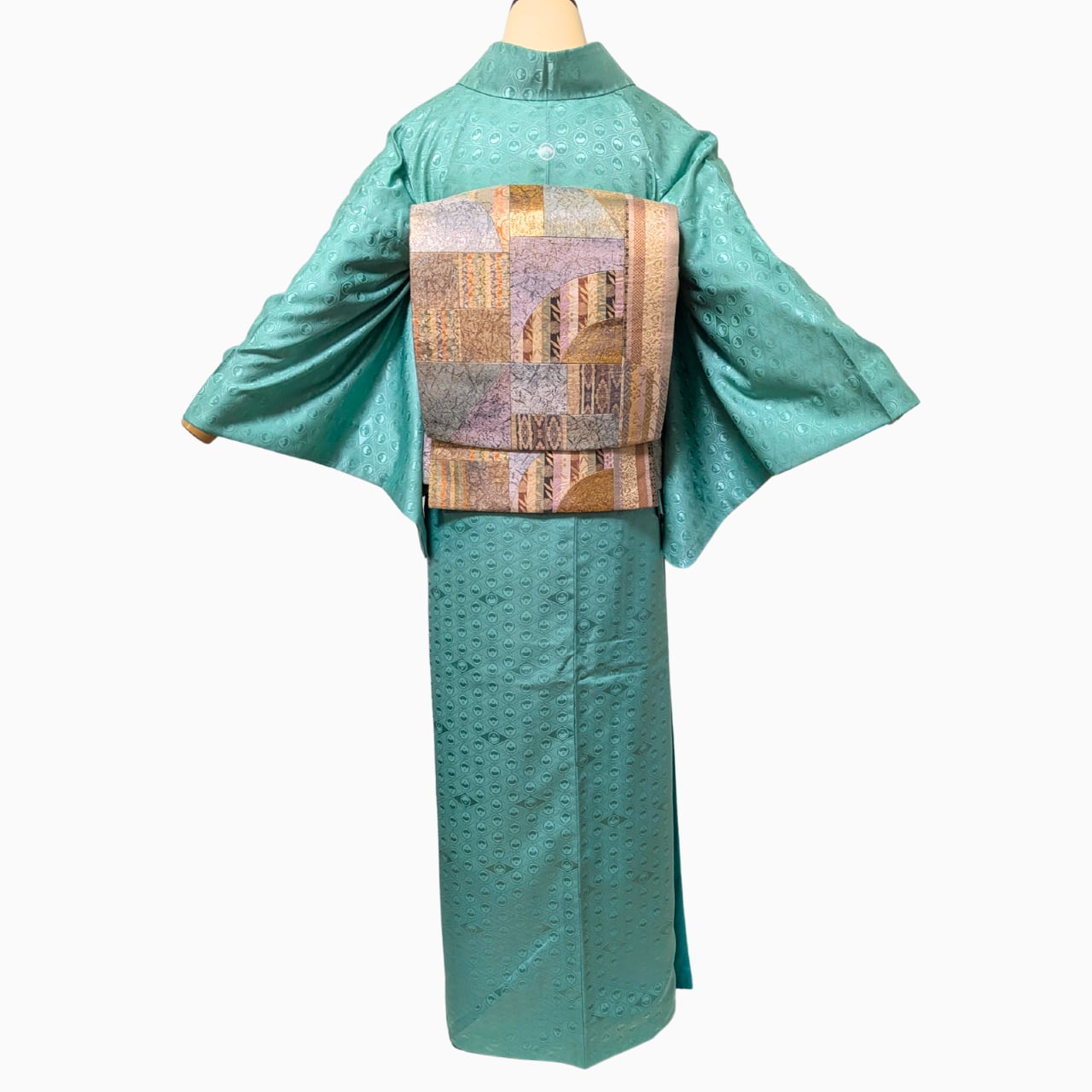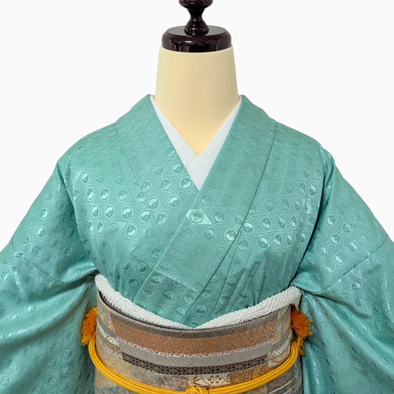 色無地, 洗える着物, 一つ紋, ミントグリーン, トールサイズ, ロング丈, 地紋入り, 上品, きちんと感, フォーマル,胴抜き仕立て
