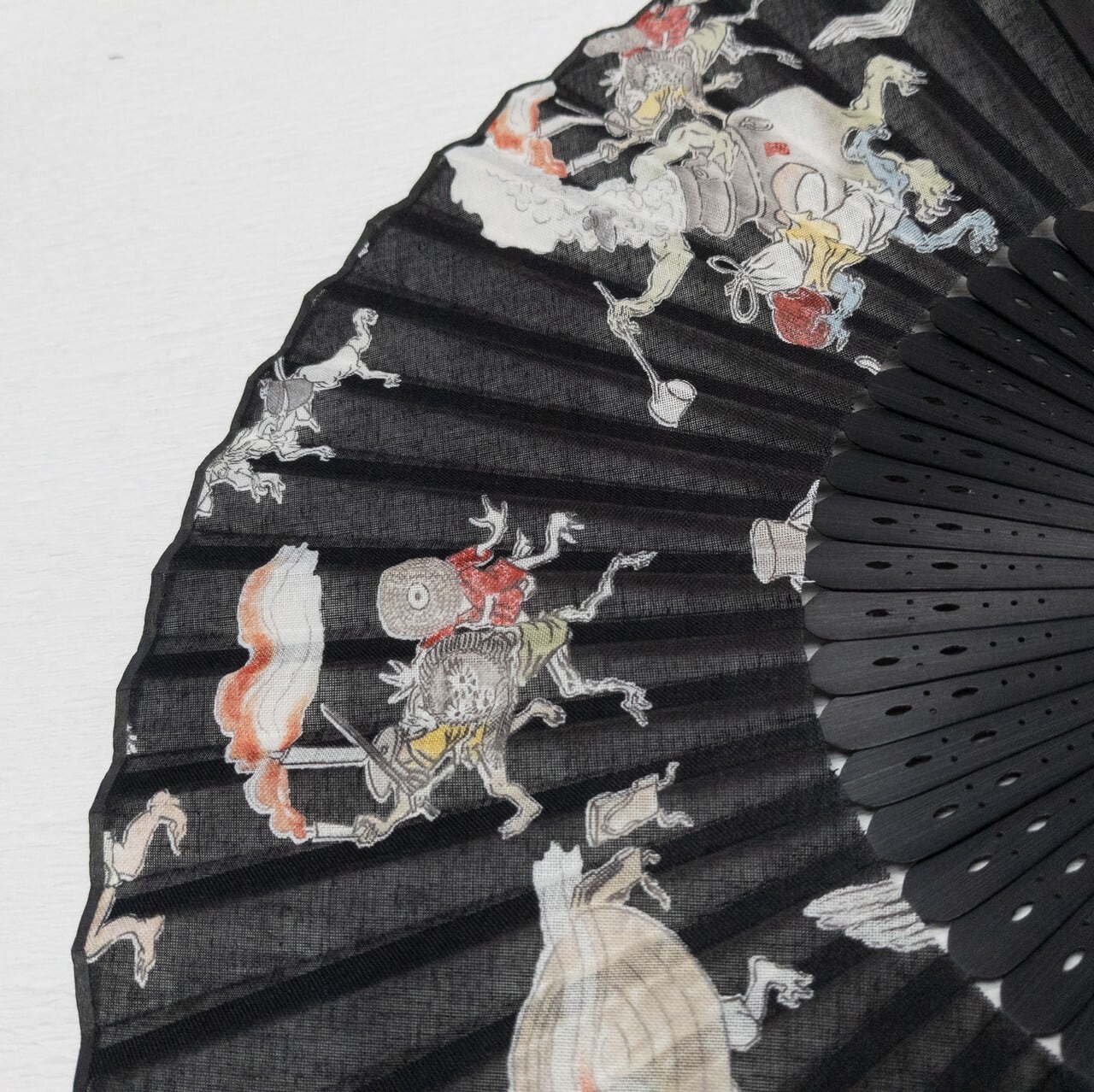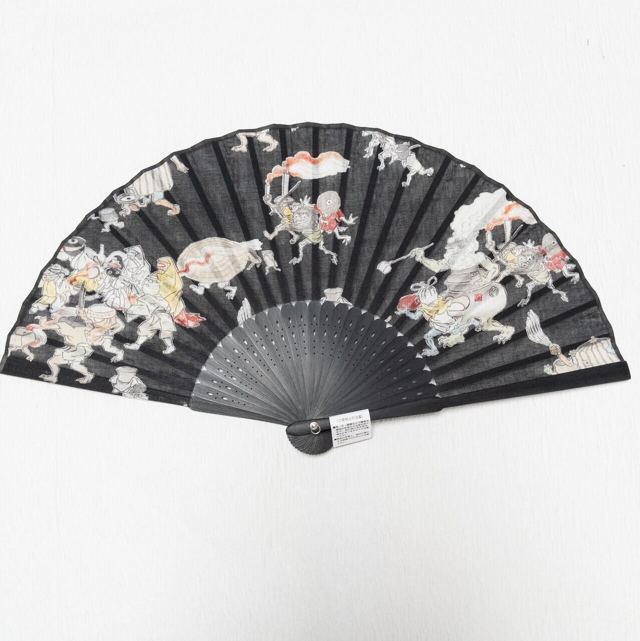 【新品】扇子 妖怪づくし 百鬼夜行 黒 帯に挟みやすい厚み