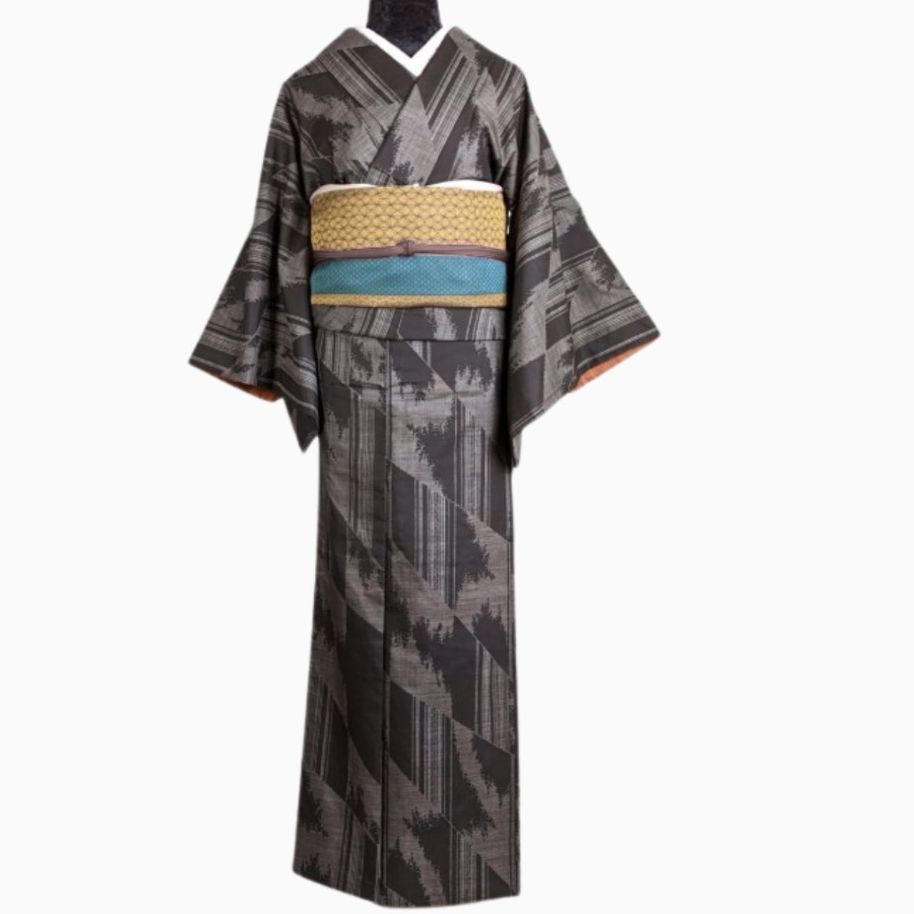 本場泥大島紬,大人の着物,小さめ着物,リユース着物,黒い着物,伝統工芸品,カジュアル着物,モダンな着物,日常の着物,お出掛け着物,着物生活