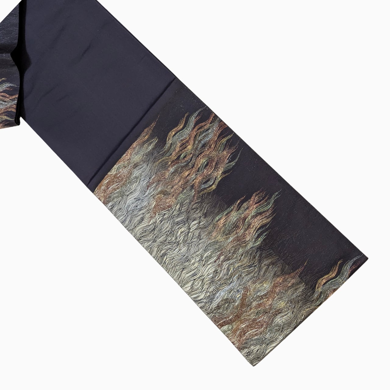 【花柄に頼らずクールに華やぐ】洒落袋帯 正絹 六通 濃い紫 火焔柄