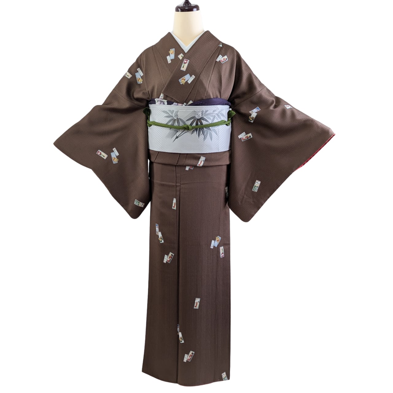 小紋, 正絹, ココアブラウン, 短冊柄, 裄長, きちんと感, 上品, 日常着, 観劇, 習い事